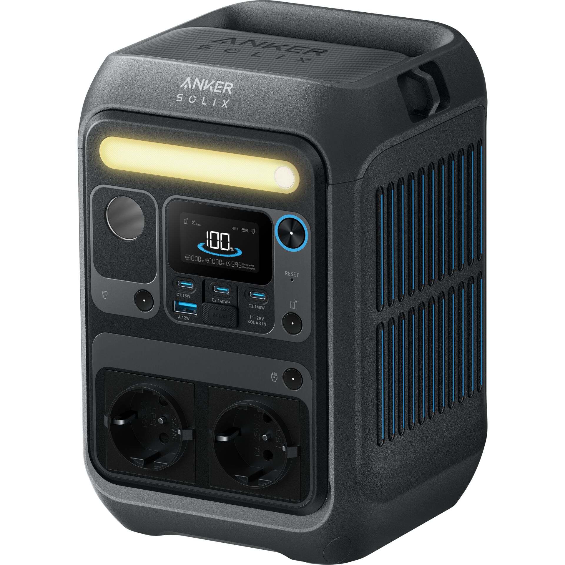 Die Anker SOLIX C300X Powerstation ist eine tragbare Energiequelle mit 288 Wh Kapazität, ideal für Camping, Outdoor-Abenteuer oder als Notstromlösung. Mit einer Spitzenleistung von 600 W versorgt sie bis zu sieben Geräte gleichzeitig. Dank vier flexibler Lademodi – AC, Solar, USB-C und Kfz – lässt sie sich überall schnell aufladen. Der langlebige LiFePO4-Akku bietet bis zu 3000 Ladezyklen und bleibt dabei besonders sicher und effizient.