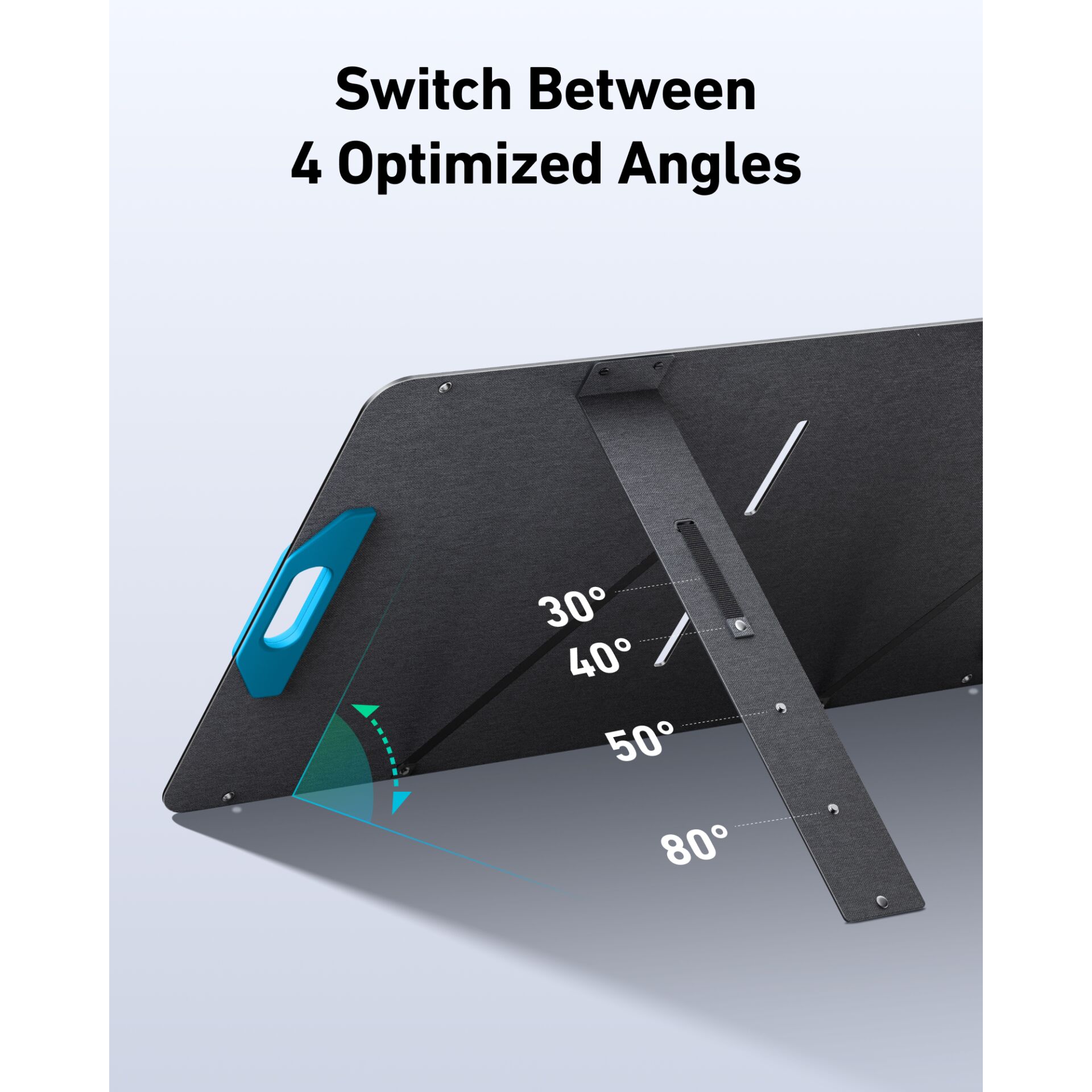 - 4 flexible Einstrahlungswinkel: Nutze das volle Potential der Sonneneinstrahlung, ganz gleich, wo du dich befindest, welche Jahreszeit herrscht oder welche Tageszeit es ist. Mit Leichtigkeit wechselst du zwischen 30°, 40°, 50° oder 80° Winkeln