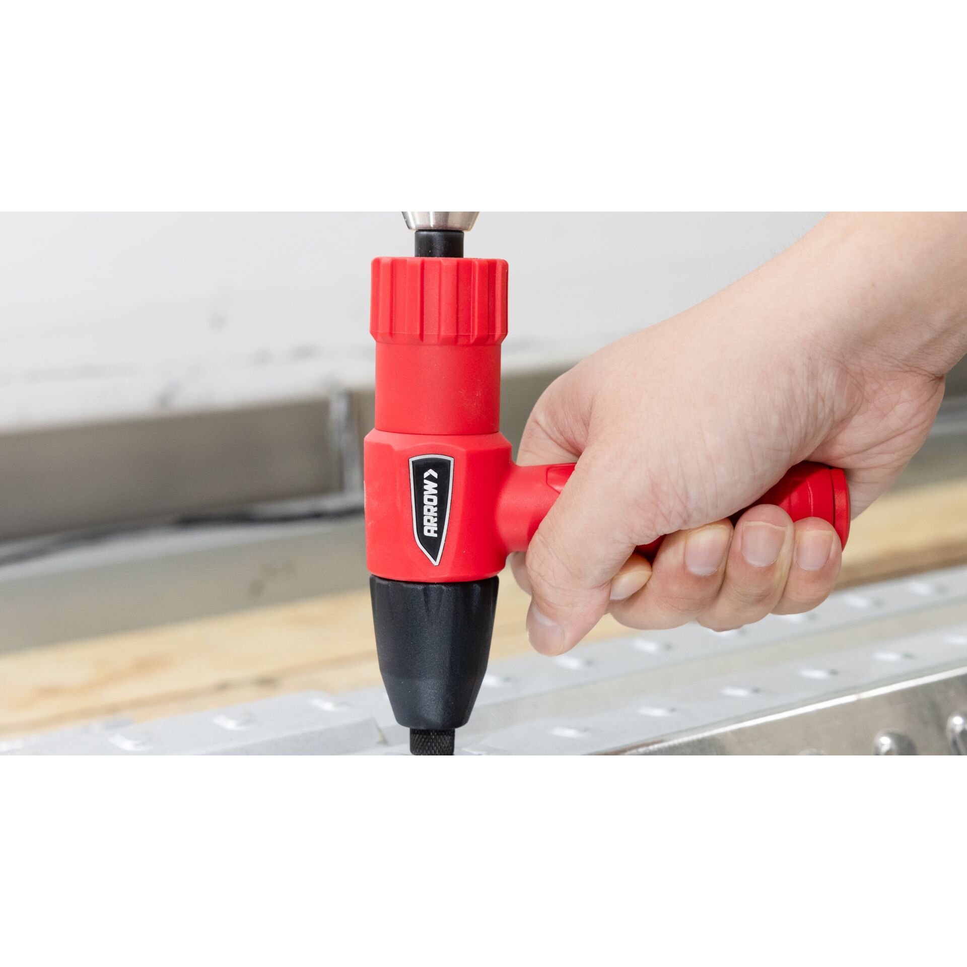 Der Adapter ist auf Arrow‑Nieten abgestimmt und unterstützt definierte Nietentypen. Materialwahl und Bauform sind auf den Einsatz im Werkstatt- und Montageumfeld ausgelegt. Mit einem Gewicht von 0,416 kg bleibt das Werkzeug auch bei längerer Nutzung gut kontrollierbar.