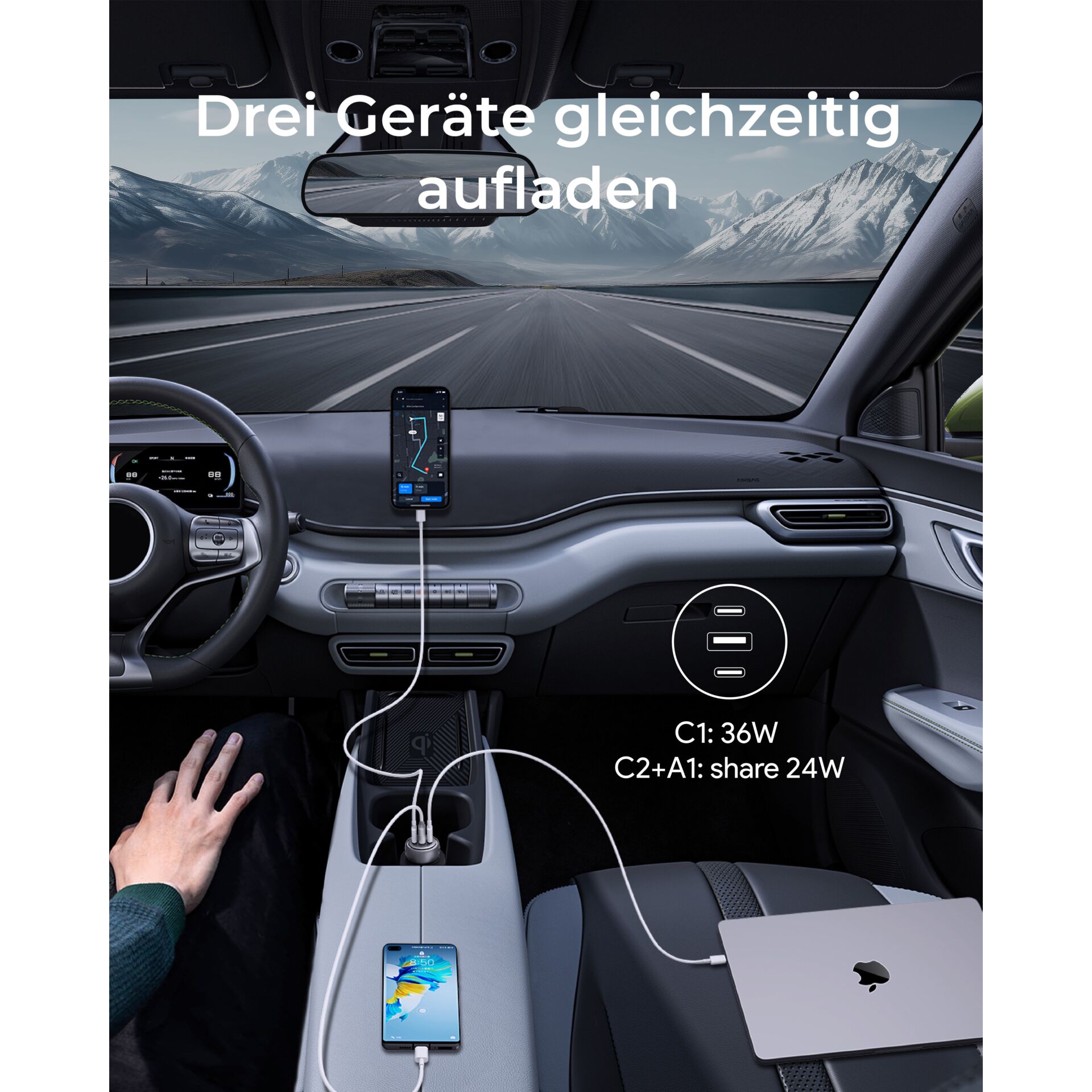- Praktischer 3-in-1 Kfz-Ladeadapter mit bis zu 66 Watt Gesamtleistung