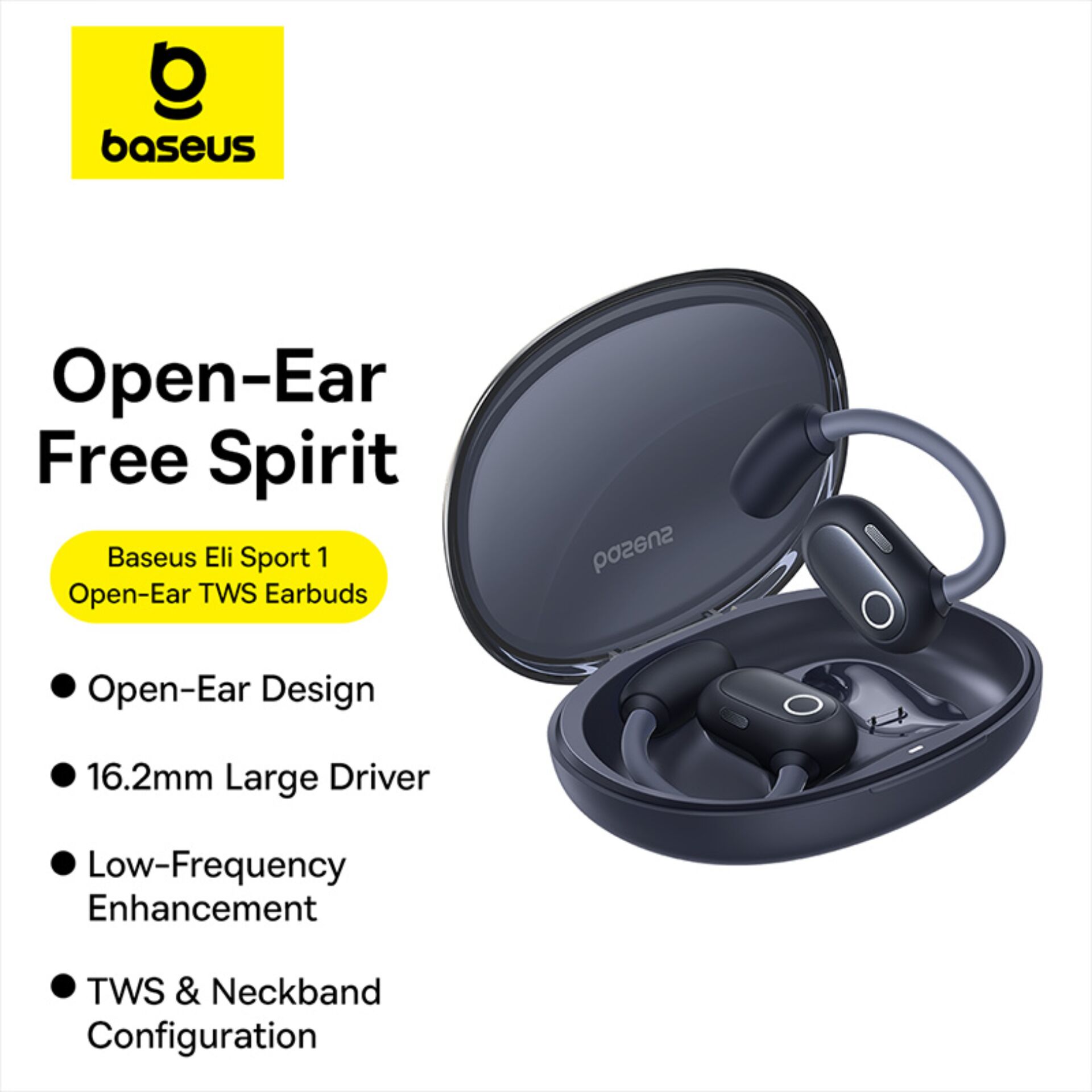 Die Baseus Eli Sport 1 Open-Ear Wireless Earbuds bieten ein offenes Design für maximalen Komfort und Sicherheit beim Sport, da Umgebungsgeräusche weiterhin wahrgenommen werden. Mit leistungsstarken 16,2 mm Treibern und ENC-Mikrofonen liefern sie klaren Sound und störungsfreie Gespräche – selbst bei Wind oder Bewegung. Dank abnehmbarem Nackenbügel, IPX4-Wasserfestigkeit und bis zu 30 Stunden Akkulaufzeit sind sie ideal für aktive Nutzer.