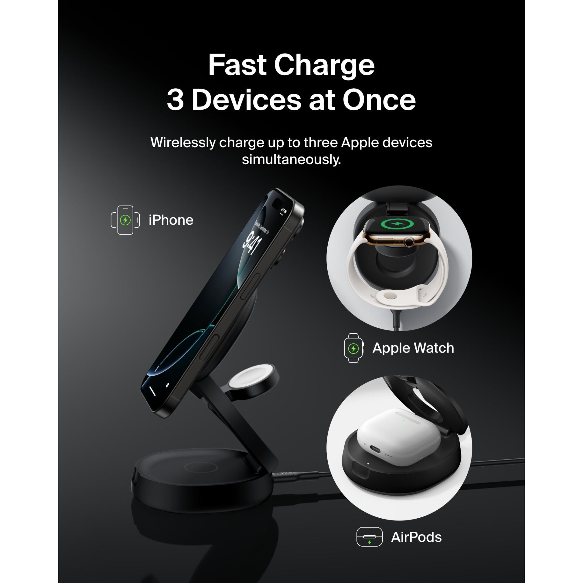 Belkin BoostCharge Kompakte magnetische 3-in-1-Ladestation / Schwarz
