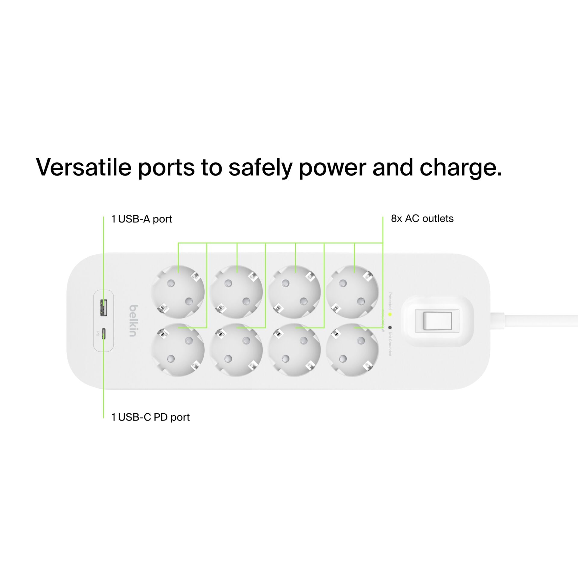 Belkin Steckdosenl./Überspannung 8-fach, USB-A+C, 900J SRB003VF2M