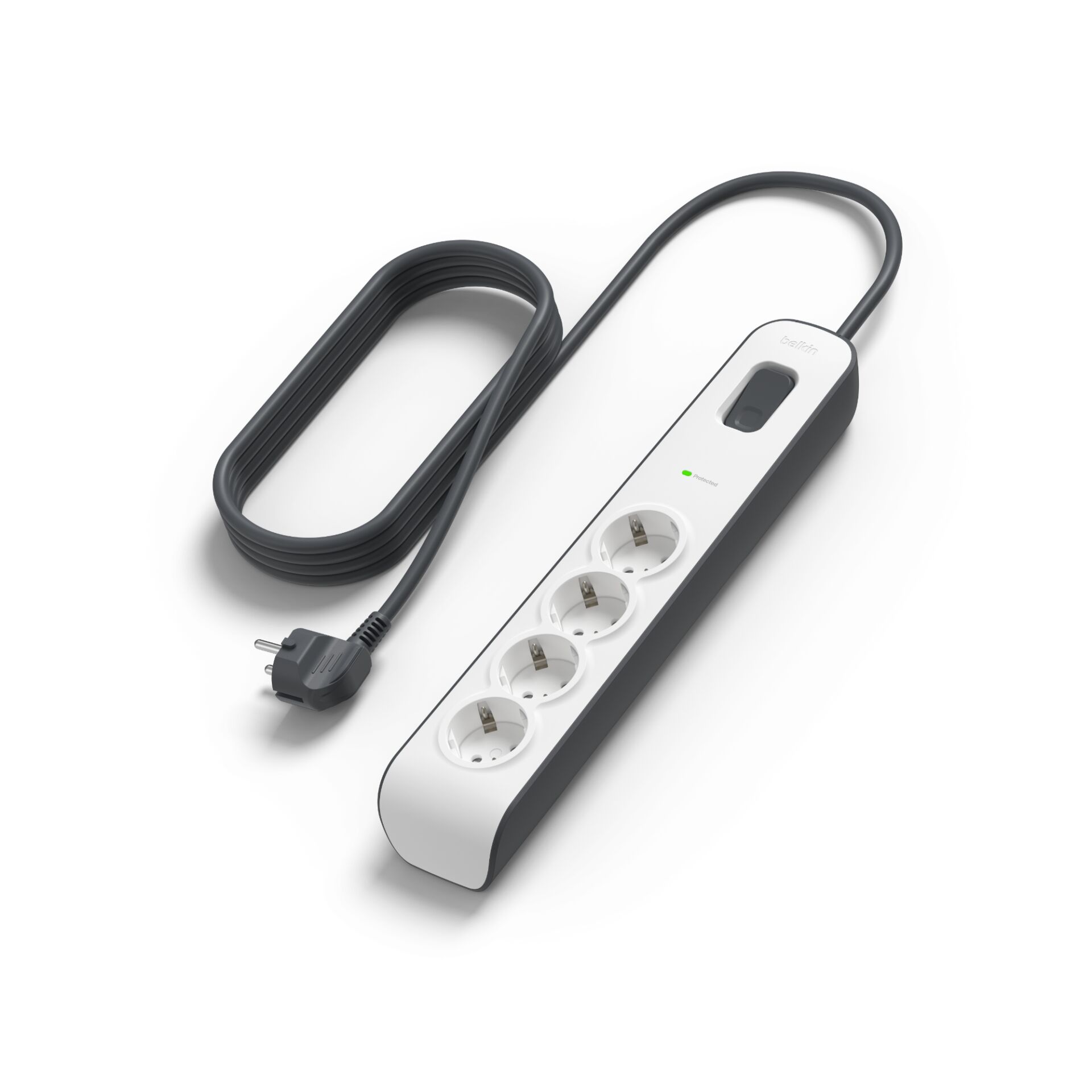 - Vier Steckdosen, die vor Überspannungen geschützt sind
