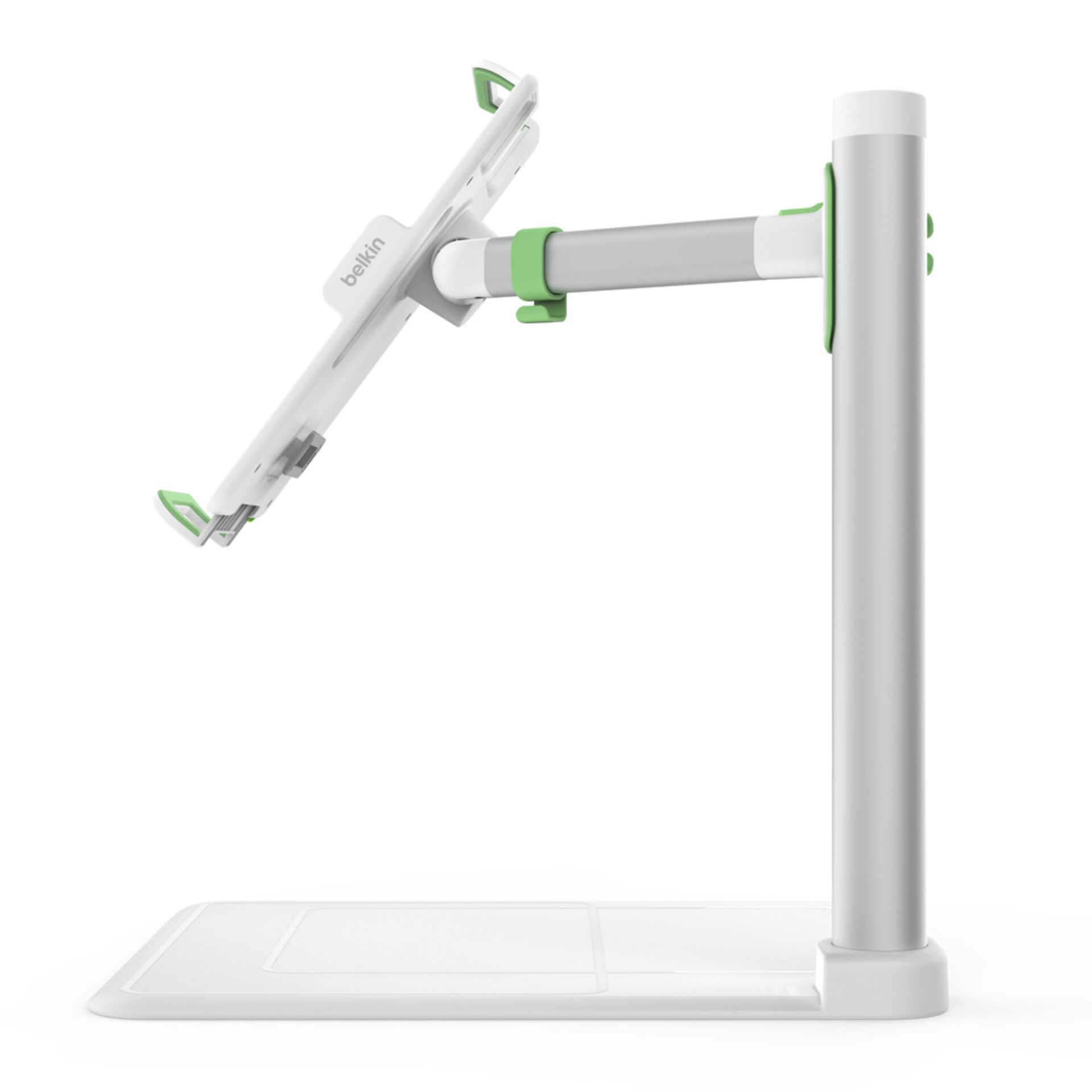 Mit dem Tablet Stage, der bequemen Lösung für den Distanzunterricht, können Sie überall unterrichten. Halten Sie über Ihr iPad oder ein anderes kompatibles Tablet einfach und sicher Live-Präsentationen, kommunizieren Sie interaktiv mit den Studierenden oder zeigen Sie Fotos und Videos. Verstellbare Halterungen sorgen dafür, dass Ihr 7 bis 11 Zoll großes Tablet (und bis zu 12,9 Zoll bei bestimmten iPad-Modellen) sicher über der Präsentationsfläche befestigt wird. Mithilfe eines drehbaren Arms können Sie das Tablet senkrecht oder waagerecht ausrichten. Mit dem Tablet Stage und Belkins kostenloser Stage App können Sie sich im Klassenzimmer oder beim Distanzunterricht mit den Studierenden austauschen, Präsentationen halten und den Unterricht informativ und interaktiv gestalten.