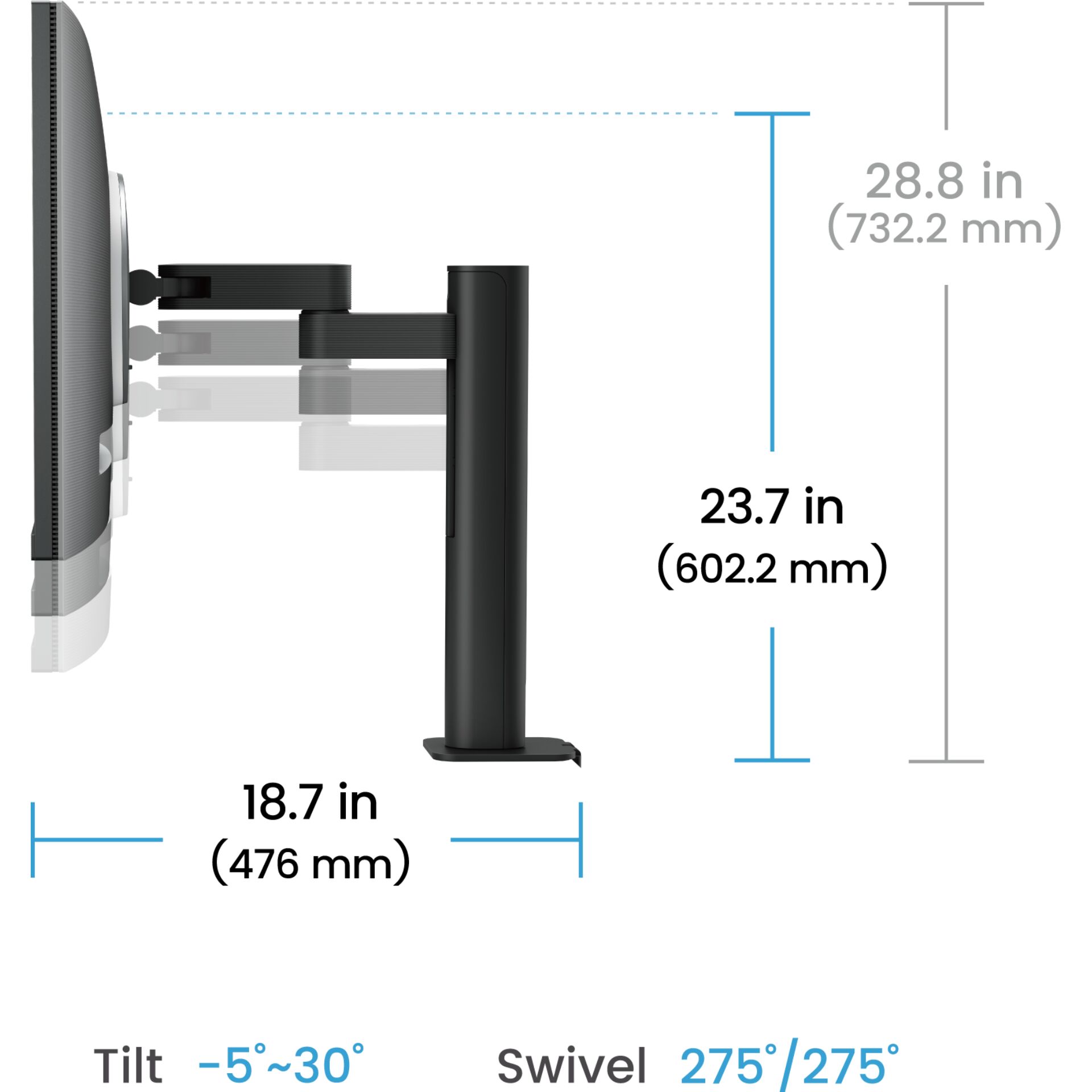- Monitor ist neigbar, höhenverstellbar, drehbar sowie schwenkbar