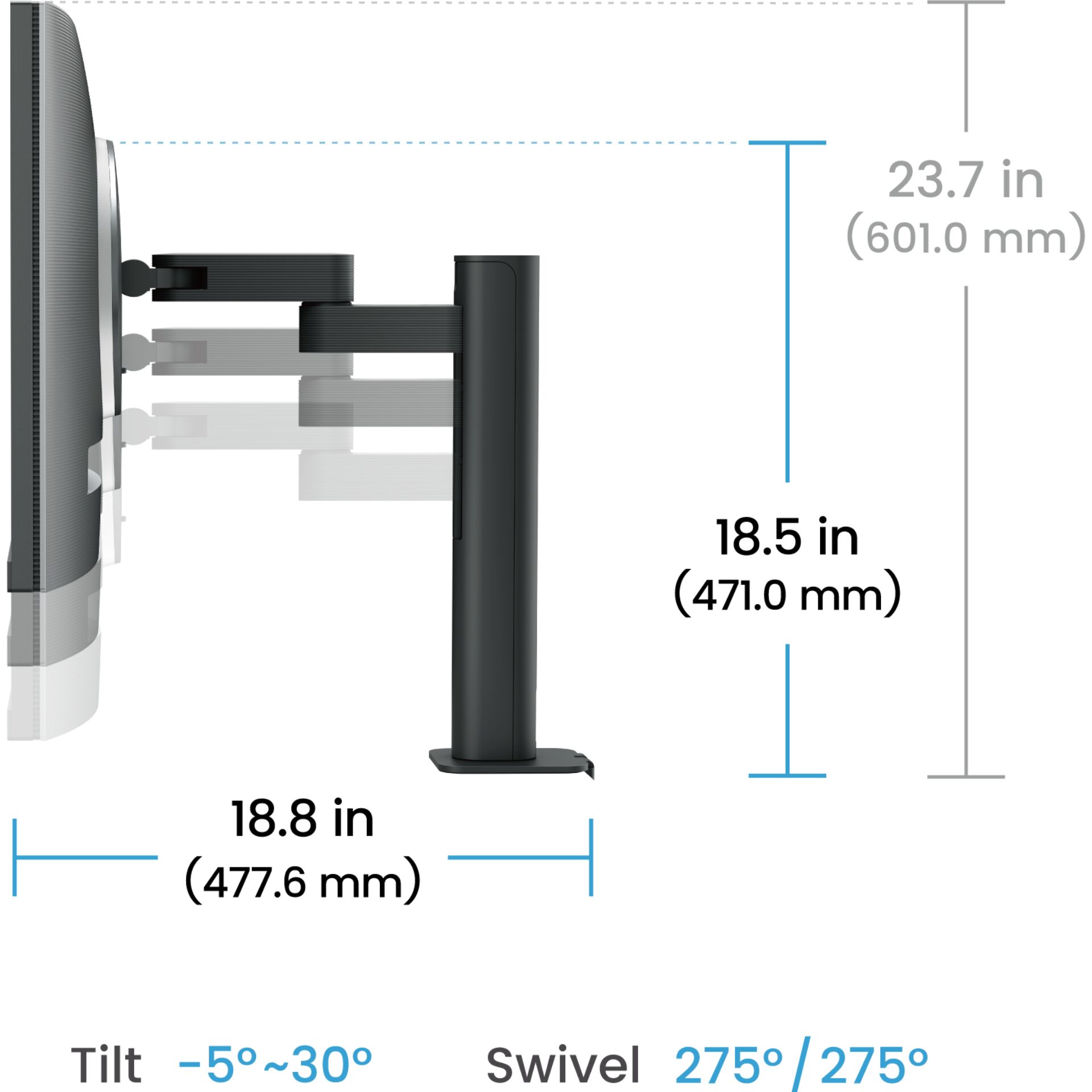 - Monitor ist neigbar, höhenverstellbar, drehbar sowie schwenkbar