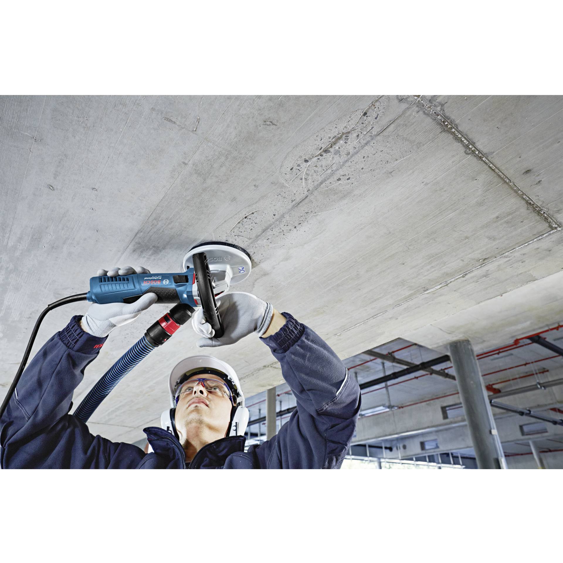 Dieses Elektrowerkzeug ist für das Schleifen von Beton bestimmt. Es ist kompatibel mit dem Bosch Click & Clean Staubabsaugsystem.