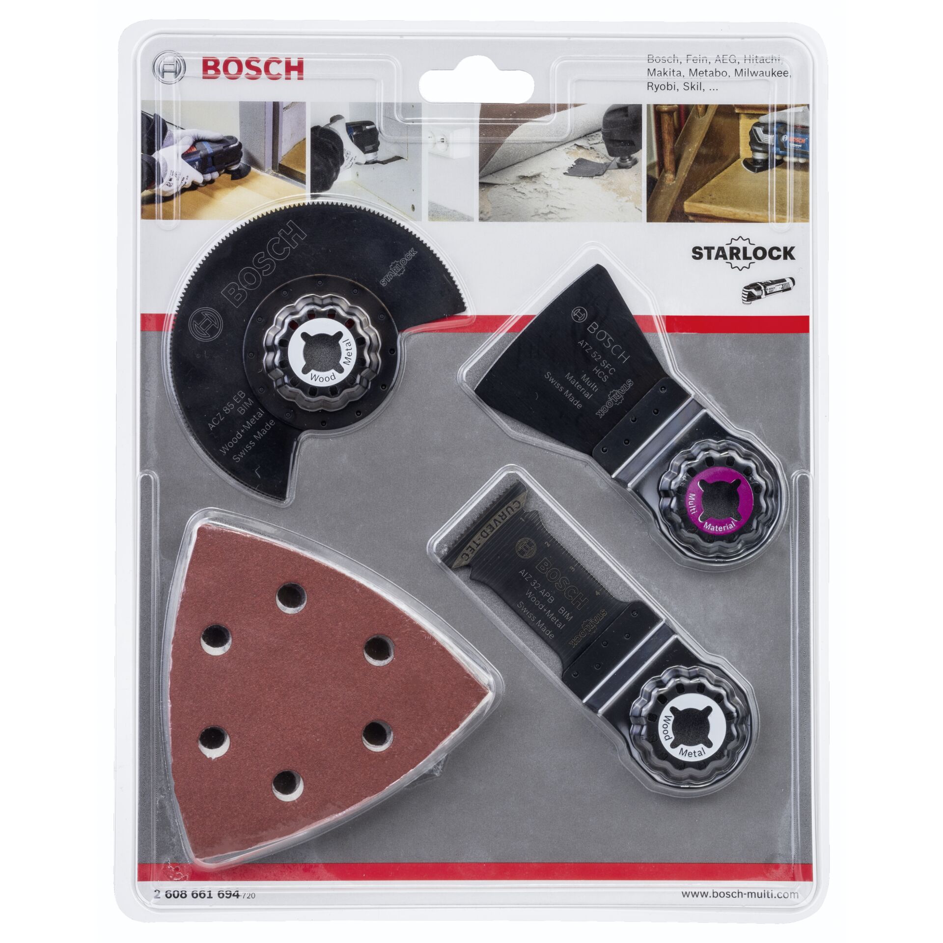 - Set mit Starlock-Zubehör zum Sägen, für Tauchschnitte, zum Schleifen und Schaben verschiedener Materialien