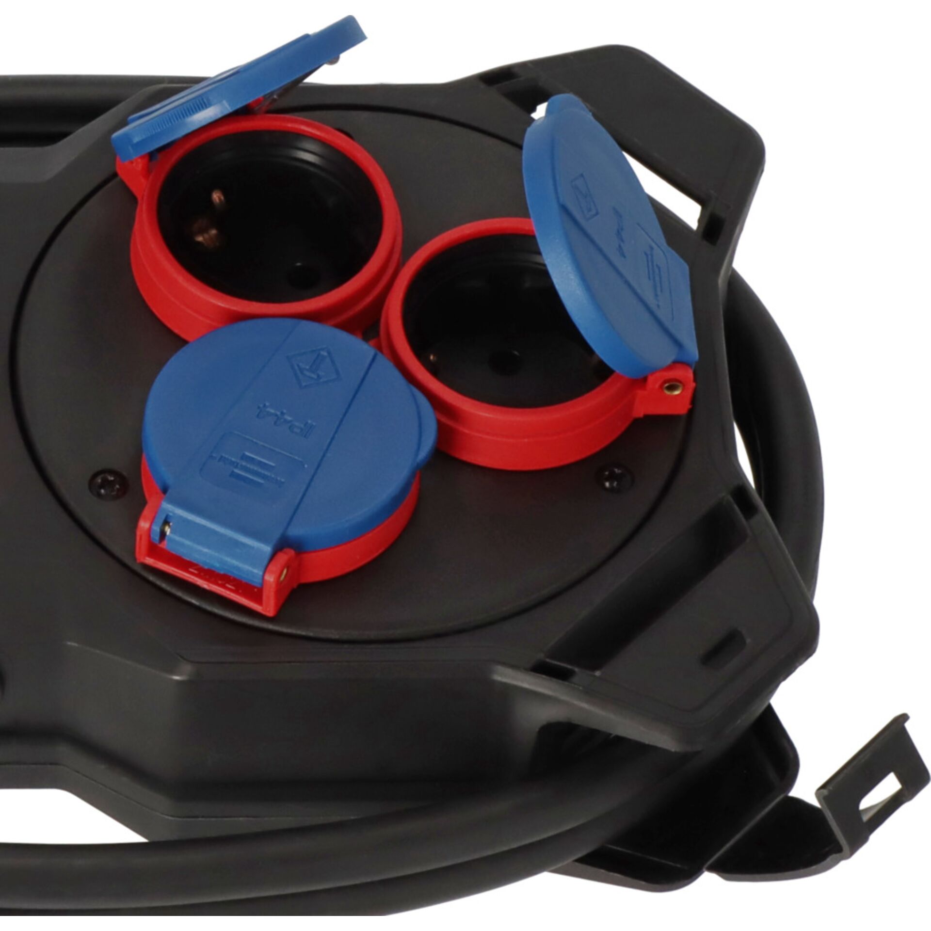 - 1 CEE-Steckdose (400V/16A) und 3 Schutzkontakt-Steckdosen (230V/16A) – für verschiedene Geräte gleichzeitig