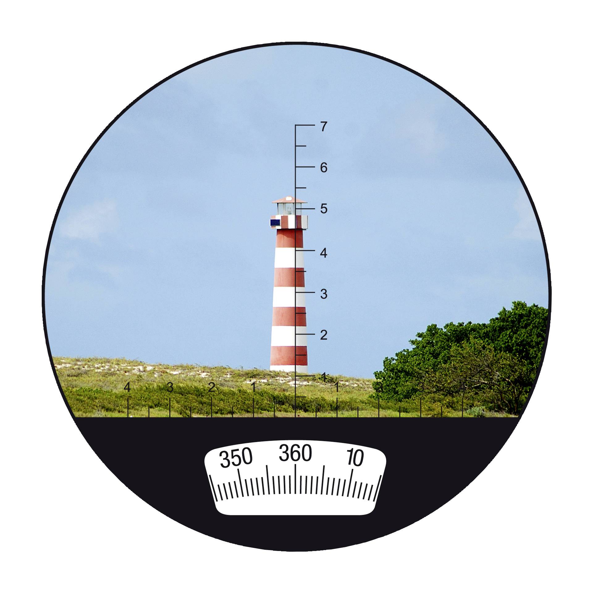 Das NAUTIC 7x50 ist ein Fernglas mit zahlreichen Features für den Outdoor-Einsatz. Neben dem integrierten beleuchteten 360°-Kompass verfügt es über eine Strichplatte. Beide nautischen Navigationshilfen erscheinen direkt im Sehfeld. Die Rechenskala am Objektivstutzen ermöglicht zudem die schnelle Berechnung von Entfernungen oder Höhen. Einfach den bekannten Wert einstellen, und der gesuchte Wert kann direkt auf der Skala abgelesen werden.