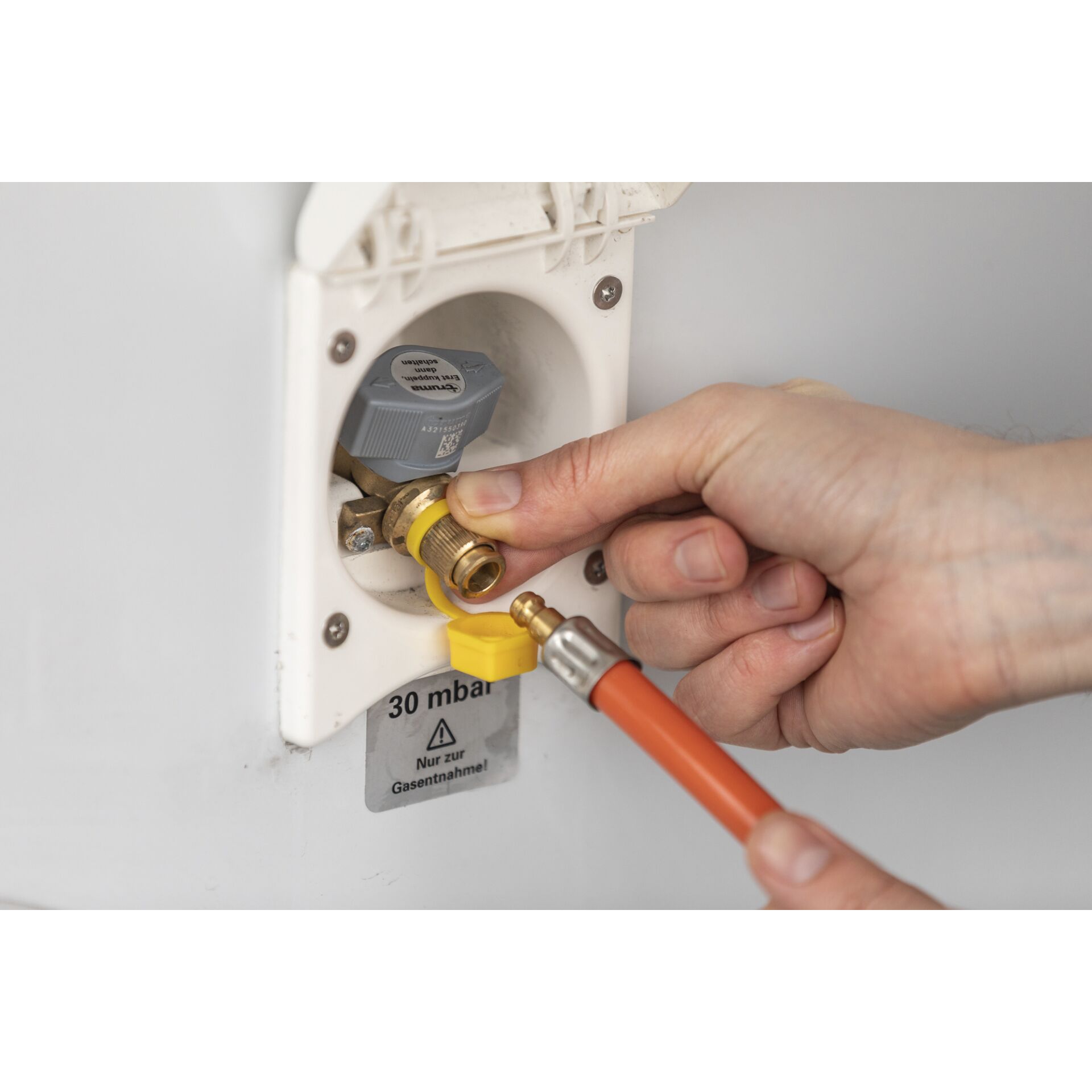 - Ausführung mit 30 mbar Betriebsdruck zum Anschluss an einen Caravan