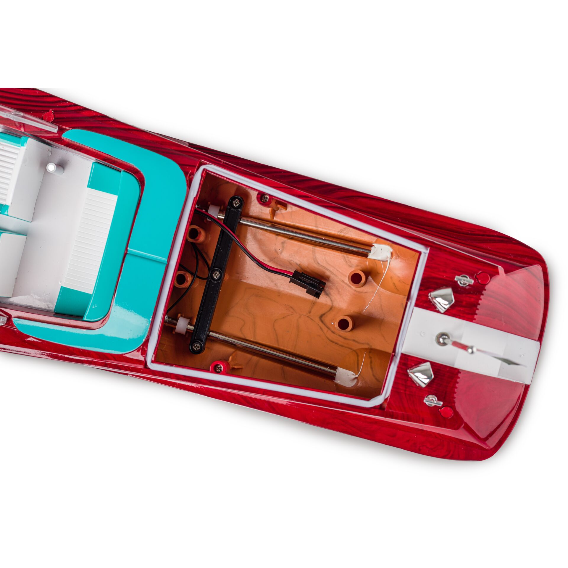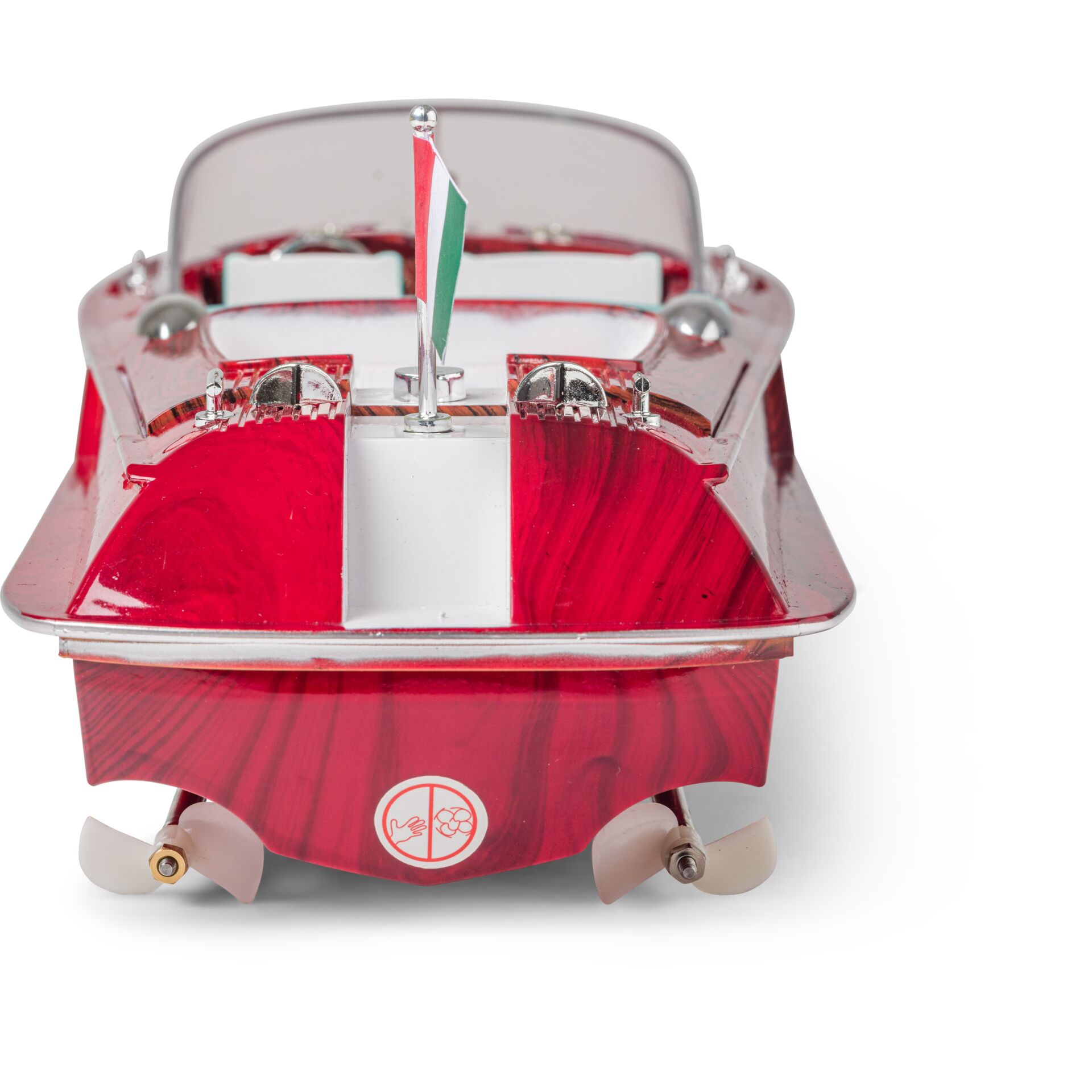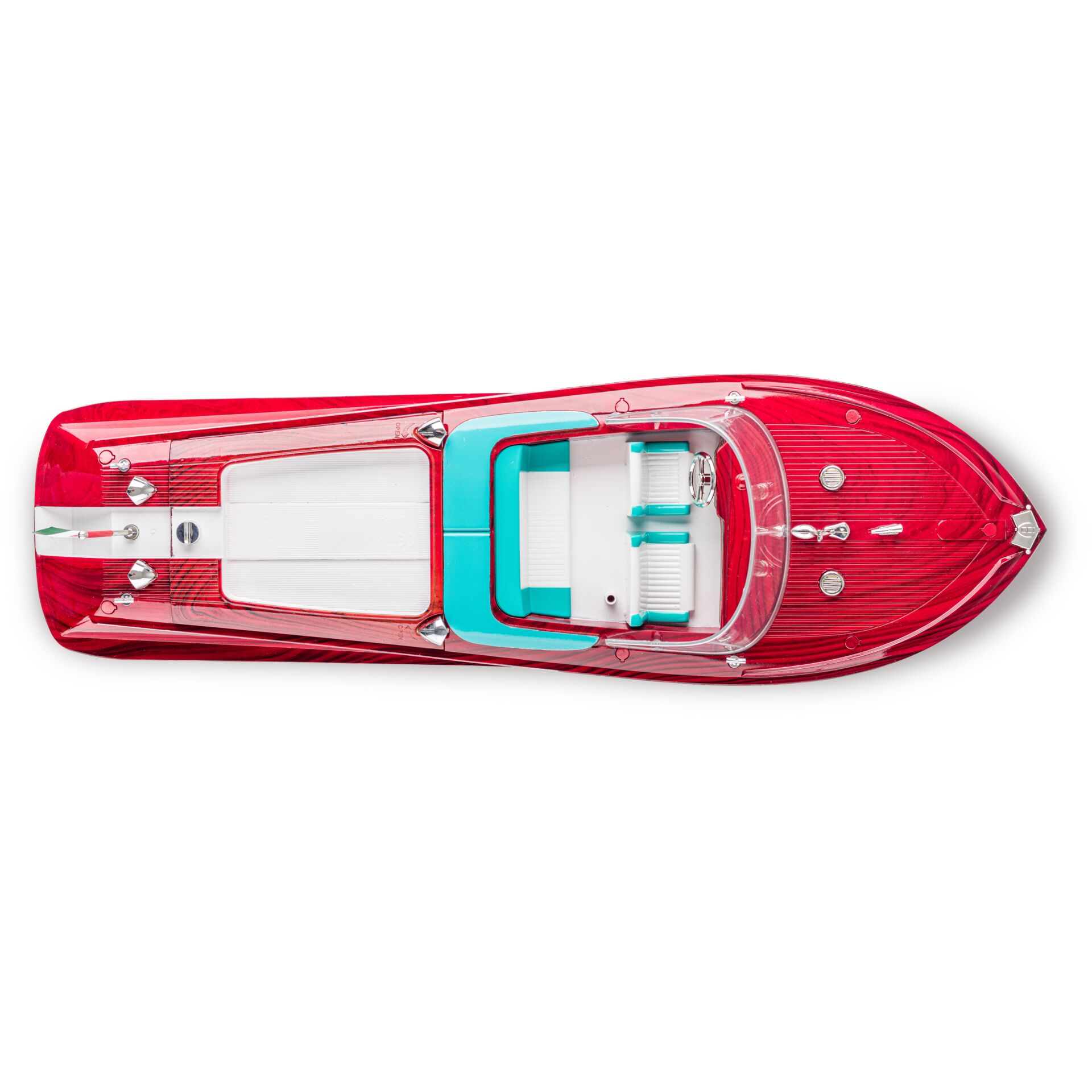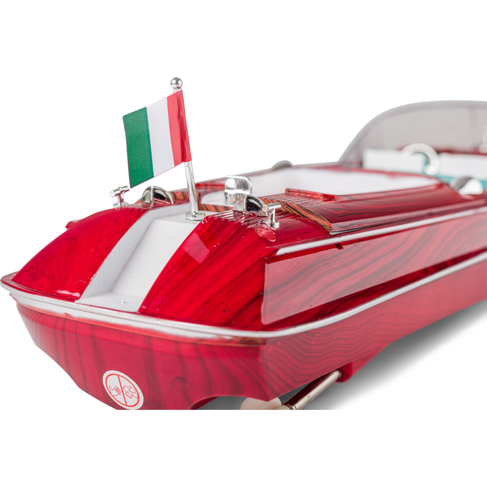 Die ferngesteuerte Luxusyacht ist auf dem heimischen Teich oder auf einem kleinen See gut aufgehoben. Mit bis zu 10 km/h fährt es über das Wasser. Es verfügt über einen Propellerantrieb, der aus Sicherheitsgründen erst anspringt, wenn sich das Boot auf der Wasseroberfläche befindet. Die detailreich gestaltete Verkleidung mit ansprechendem Führerhäuschen bietet ausreichenden Platz für eine Spielfigur. Dieses Freizeitboot von CARSON erweckt italienisches Urlaubsgefühl und sticht dank der mitgelieferten Batterien sofort