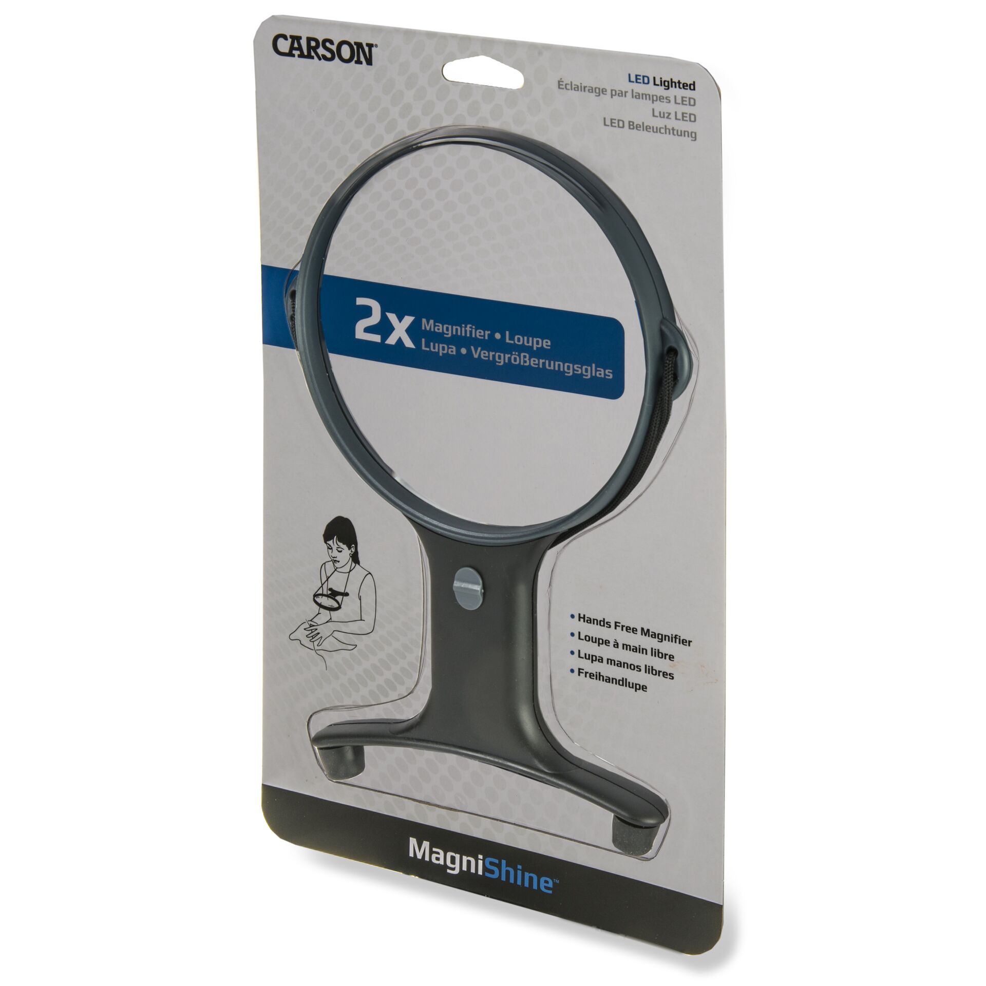 Die HF-66 MagniShine von Carson Optical ist eine tragbare 2x Freihandlupe. Die eingebaute Twin-LED-Beleuchtung verhindert Überanstrengung der Augen und sorgt für eine helle, schattenfreie Ausleuchtung. Die MagniShine Lupe hat eine verstellbare Kordel für bequemes Tragen für alle Näh - oder Handwerksarbeiten, bei denen beide Hände benötigt werden. (benötigt werden drei AAA-Batterien, nicht im Lieferumfang)