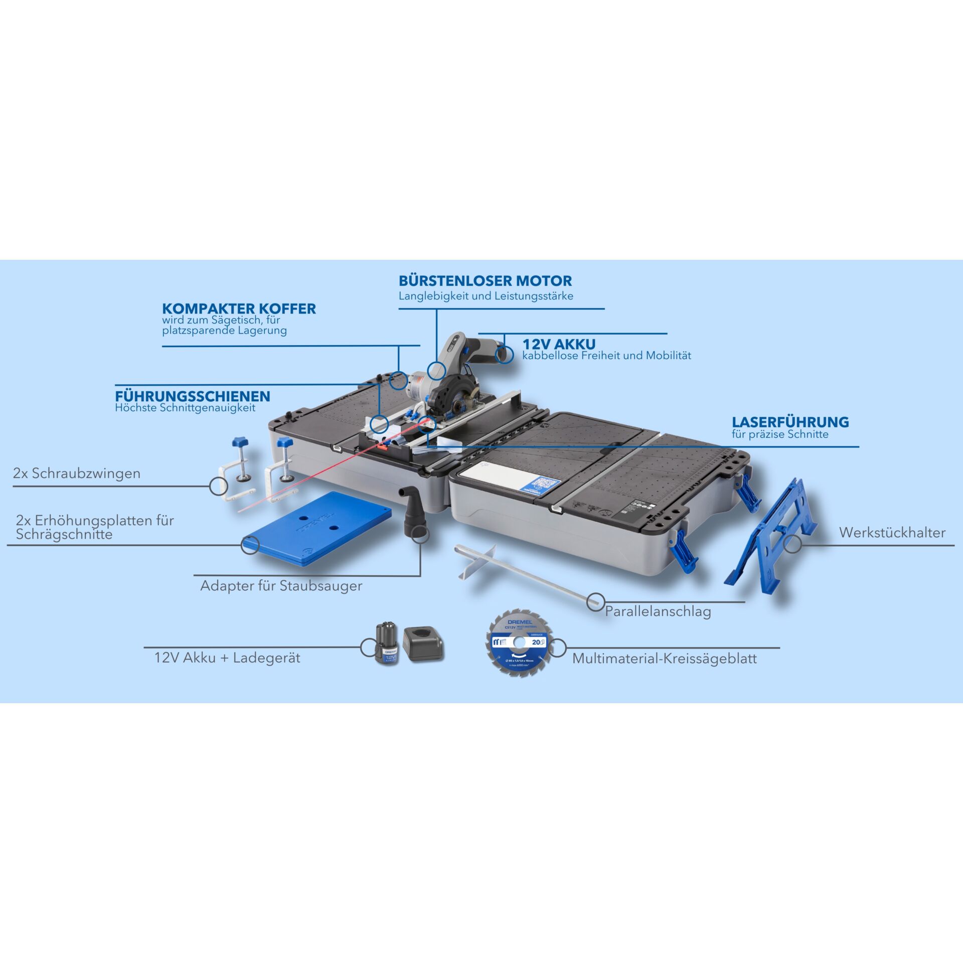 Artikelinformationen "Dremel Kompaktkreissäge inkl. mobiler Sägetisch-Koffer"