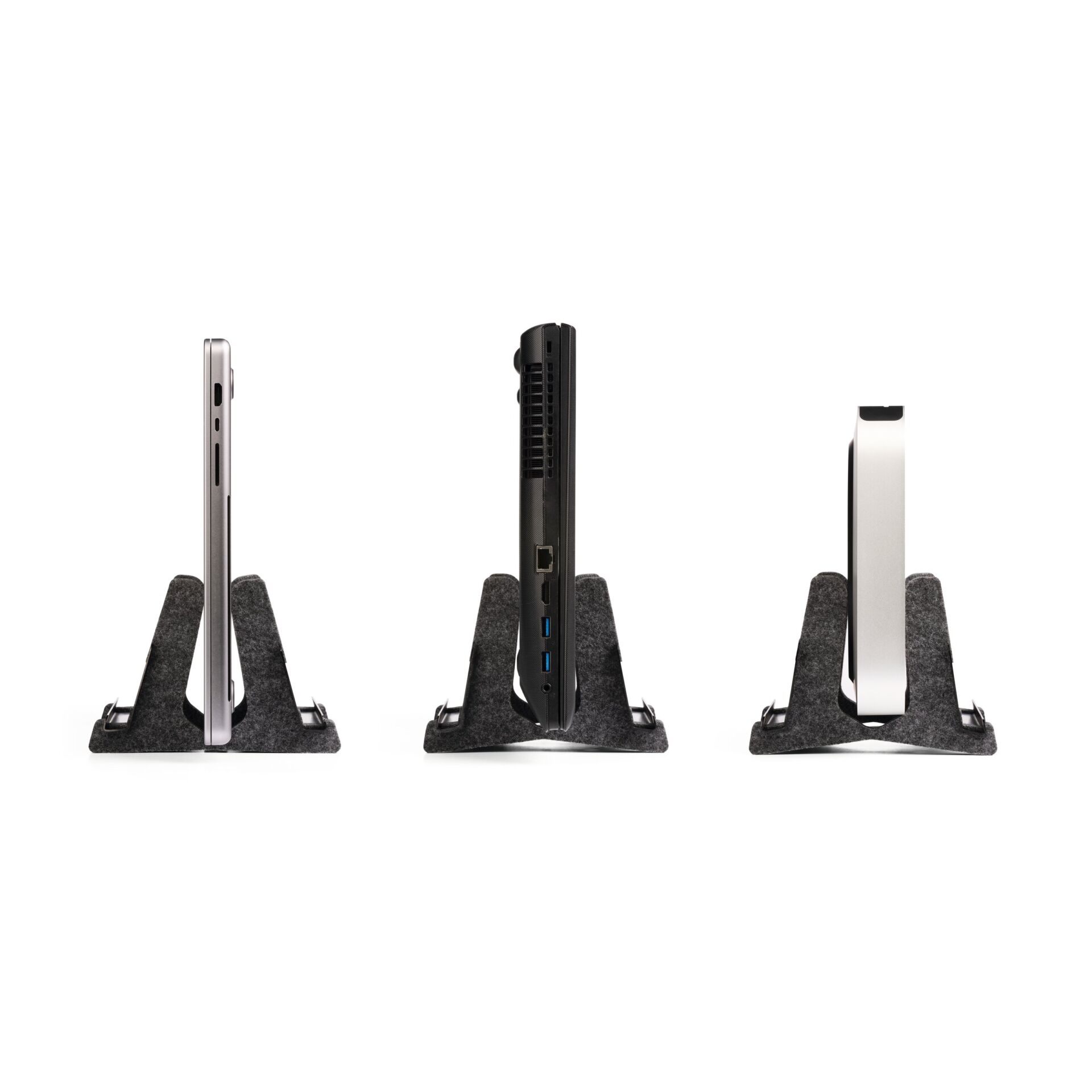 - Vertikaler Laptop Ständer aus PET-Filz mit integrierter Ablage für Tablets oder Handys