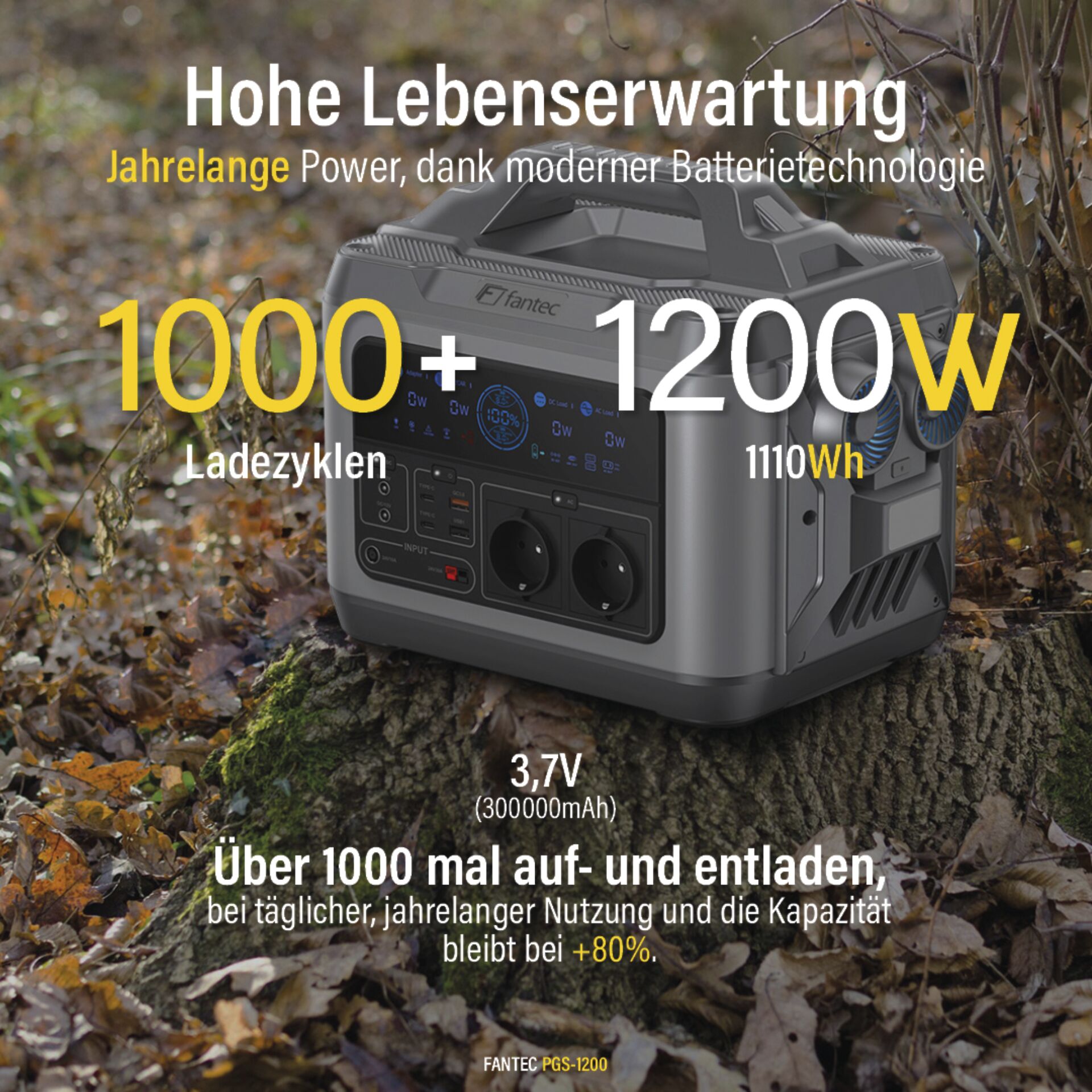 - 1200 W Nennleistung, 1110 Wh Kapazität:
