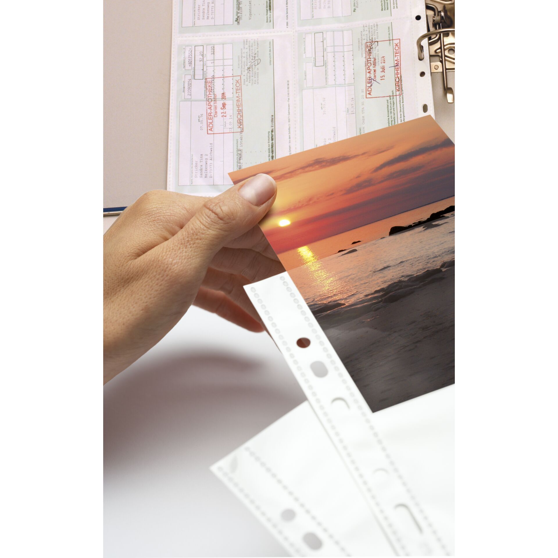 Sichthüllen mit beidseitig aufgeschweißten Klarsichttaschen. Zum übersichtlichen Archivieren und Ordnen, mit Eurolochung für alle gängigen Ordner und Ringbücher. Aus fotofreundlicher, absolut weichmacherfreier Polypropylen-Folie. Geprüfte Sicherheit - ohne chemische Einflüsse auf die Bilder.
