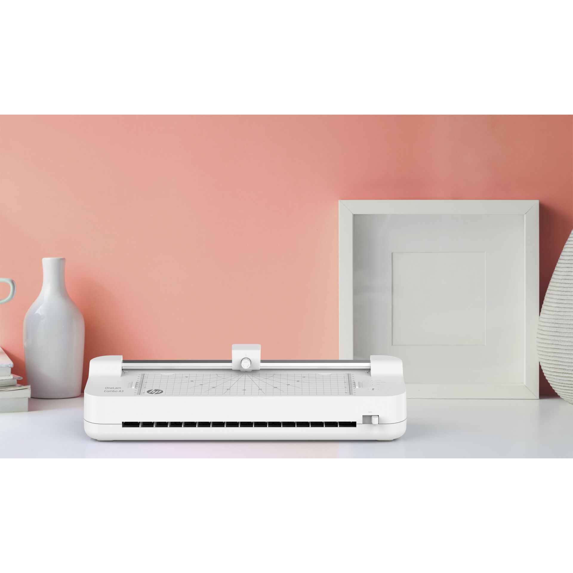 Der HP OneLam 400 A3 verfügt über einen ausklappbaren Deckel, der nicht nur als praktische Einführhilfe dient, sondern das Gerät zu einem besonders platzsparenden Begleiter macht. Der praktische Backloader eignet zum Heiß- sowie Kaltlaminieren und ist für Laminierfolien mit einer Stärke von 75/80 Micron bis 125 Micron anwendbar. Ob Sie Rezepte, Fotos oder Kinderzeichnungen vor Abnutzung schützen wollen, das Laminiergerät versiegelt Ihre Dokumente formatunabhängig von der Visitenkarte bis hin zu DIN A3.