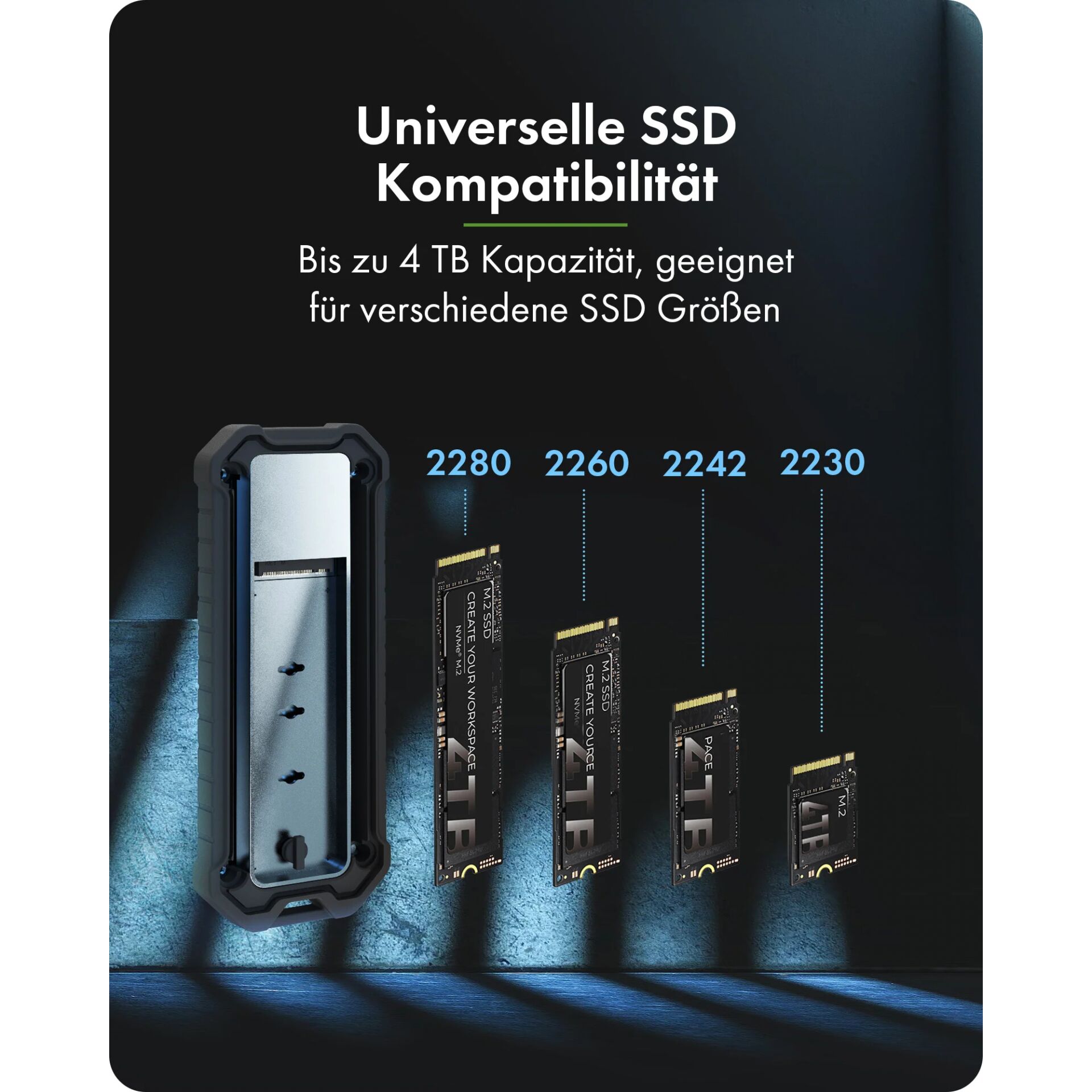 - Unterstützt NVMe und SATA SSDs bis 4 TB, nützlich für große Datenmengen
