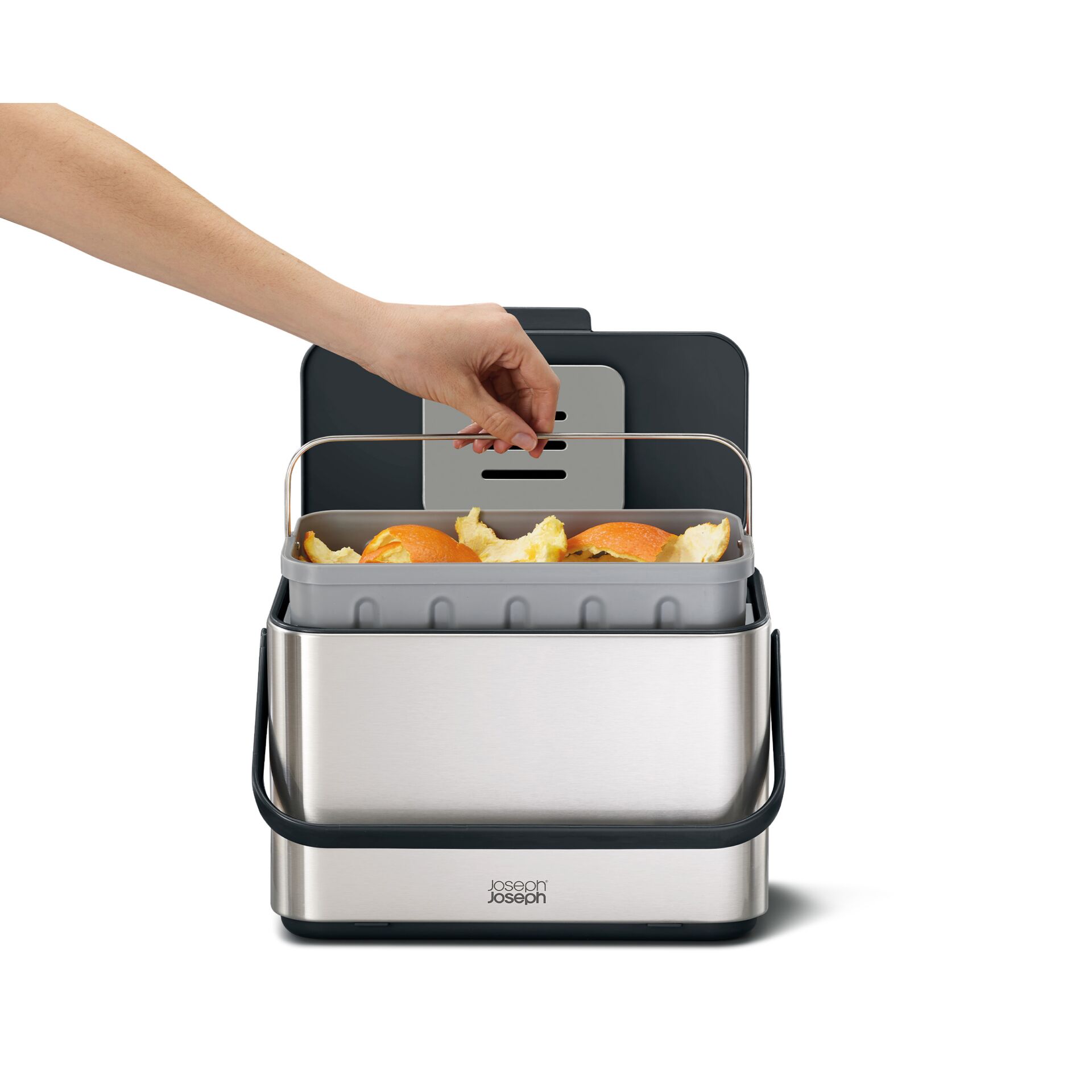 - Stauraum für kompostierbare Joseph Joseph IW2 Müllbeutel unter dem Inneneimer (nicht im Lieferumfang enthalten)