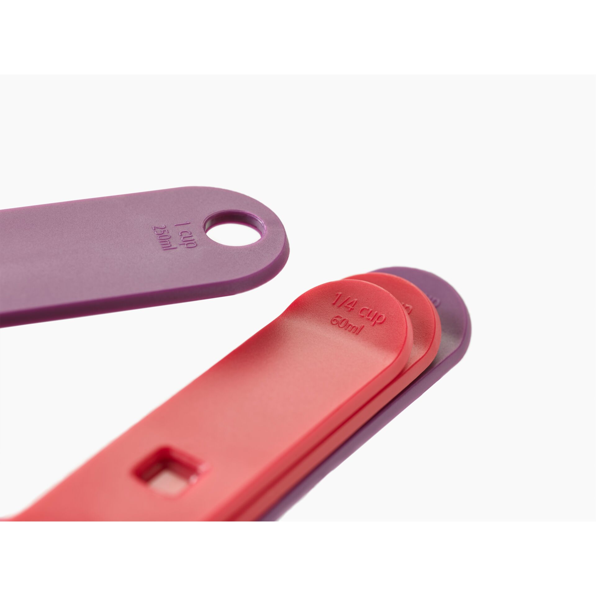 Das 8-teilige Messlöffel-Set „Nest” von Joseph Joseph ist ein cleveres, platzsparendes Küchenutensil. Die Löffel in verschiedenen Größen – von ¼ Teelöffel (1,25 ml) bis zu 1 Tasse (250 ml) – lassen sich ineinander stapeln. Die einrastbaren Griffe sorgen für eine sichere Aufbewahrung und erleichtern die Handhabung. Dank der metrischen und imperialen Maße ist das Set vielseitig einsetzbar und ideal für das präzise Abmessen beim Kochen und Backen.