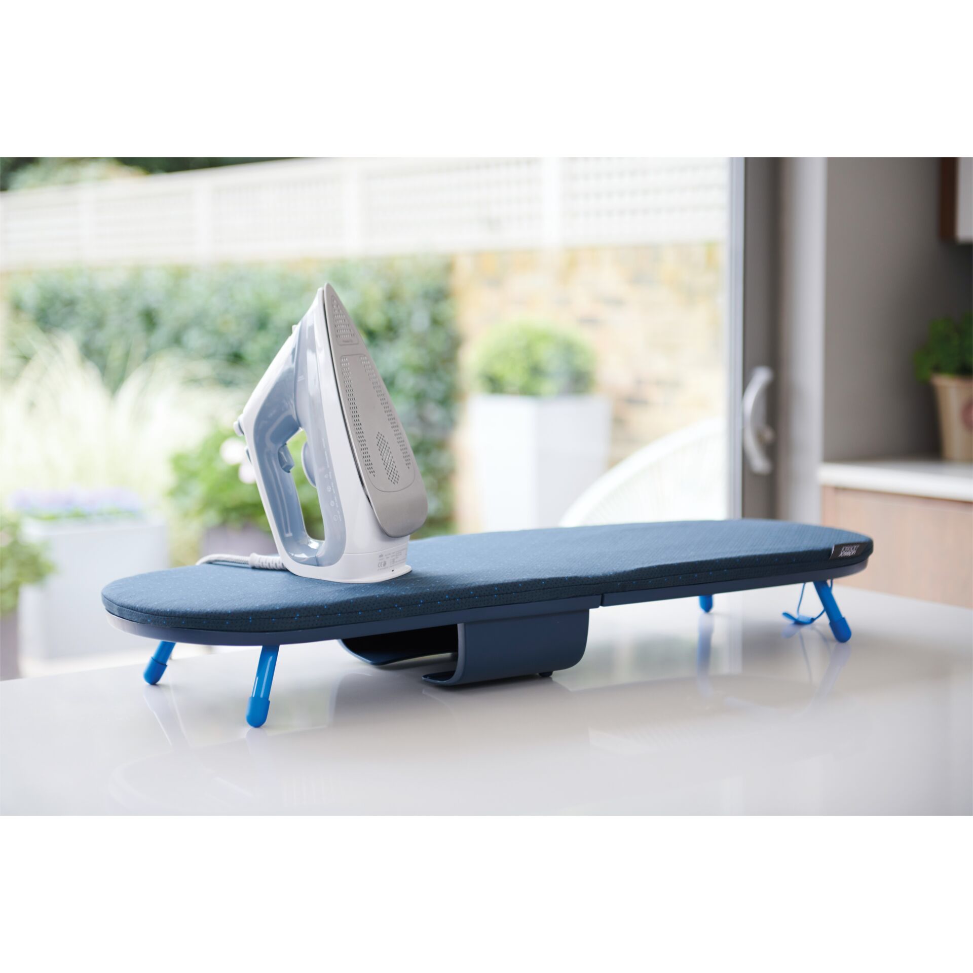 Joseph Joseph Pocket Plus Klappbares Tisch-Bügelbrett blau mit hochwertigem Bezug