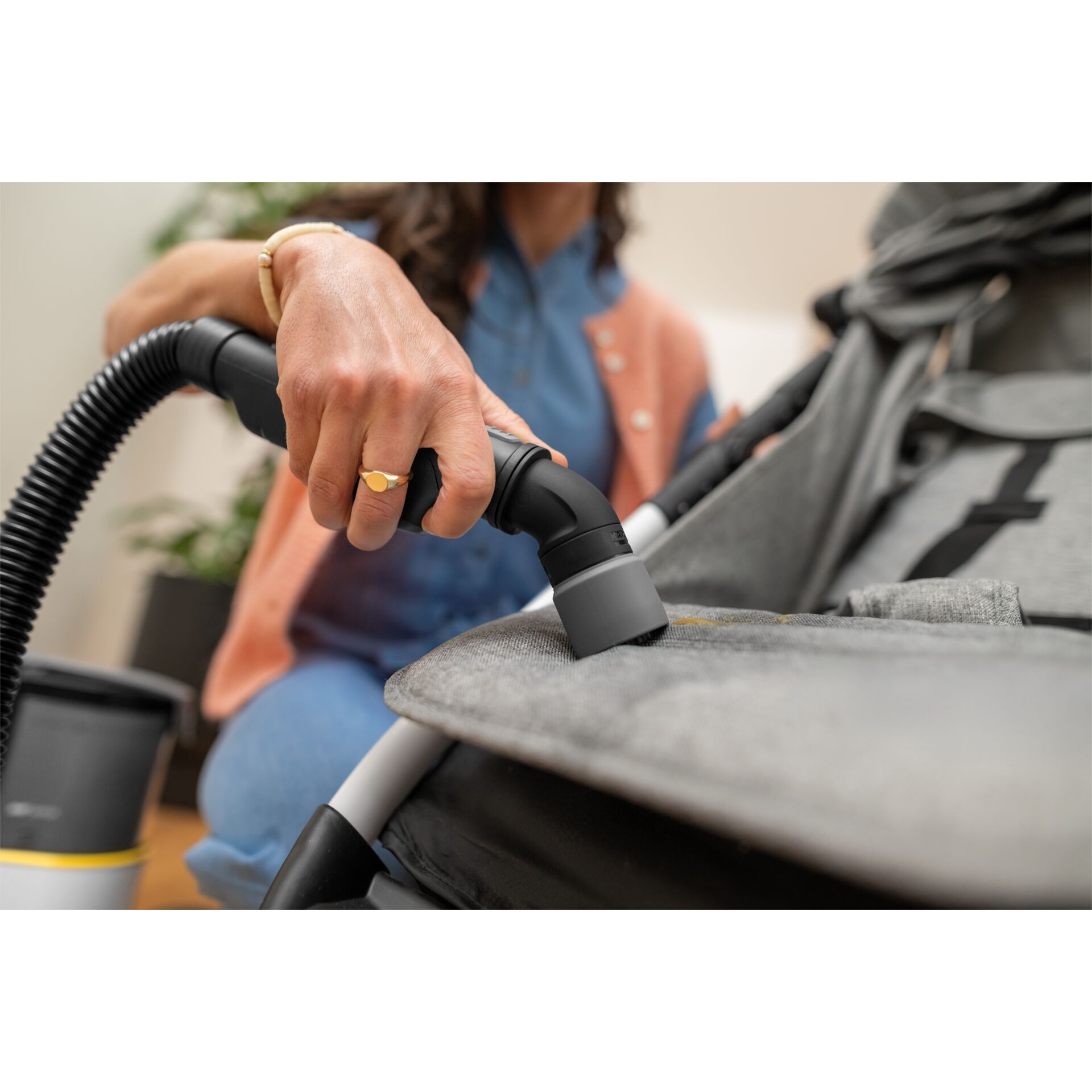 Mit der Waschpolsterdüse erreichst du auch tiefsitzende Verschmutzungen. Der integrierte Sprühschlauch unterstützt dich dabei, Flüssigkeit direkt auf die betroffene Stelle zu bringen. Die Fleckenbürste hilft dir, hartnäckige Rückstände punktgenau zu lösen – ideal bei eingetrockneten Flecken.
