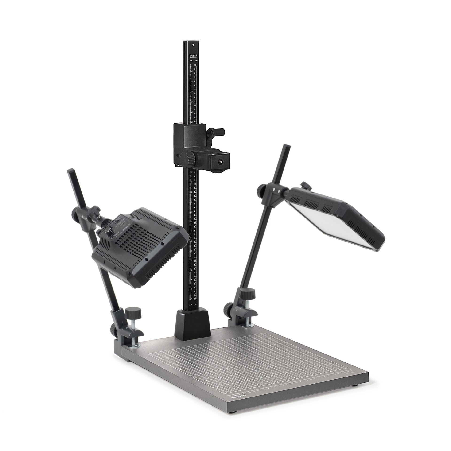 Die Leuchten lassen sich unabhängig voneinander dimmen und exakt ausrichten. Höhenverstellbare Haltestangen mit Rastgelenken und strukturierte Diffusorscheiben sorgen für eine gleichmäßige Lichtverteilung ohne harte Schatten. Die hohe Beleuchtungsstärke ermöglicht dir eine detailreiche Erfassung auch bei anspruchsvollen Vorlagen.