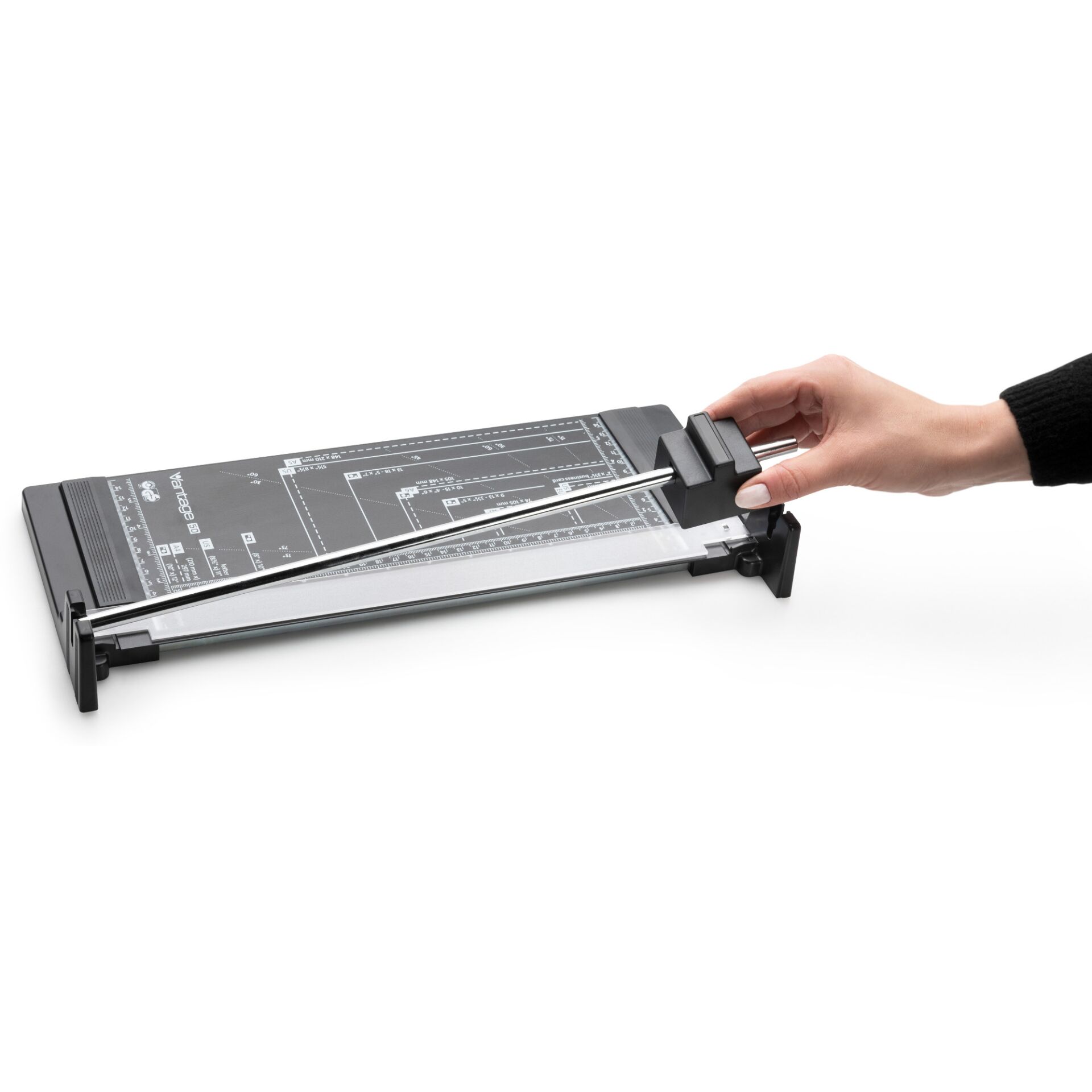 - Stabiler Schneidetisch aus Metall, mit aufgedruckten Skalen, Formatmarkierungen und Grad-Einteilung