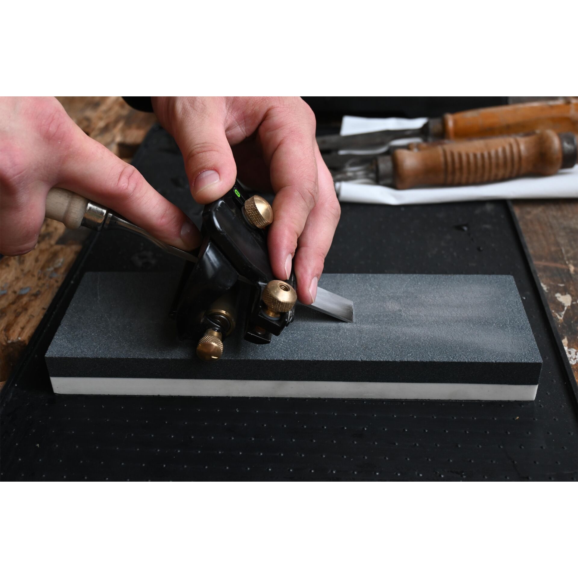 Der doppelseitige Wasserstein kombiniert eine sehr grobe Seite (Körnung 120) zum schnellen Vorschleifen mit einer mittleren Seite (Körnung 360) für das Nachschärfen. Damit eignet er sich ideal, um stumpfe oder beschädigte Schneiden zunächst wieder in Form zu bringen und anschließend eine saubere Schärfe zu erzielen. Der Stein ist robust und für den Einsatz mit Wasser als Schleifmedium ausgelegt, wodurch die Schneiden kühl bleiben und gleichmäßig geschliffen werden. Er ist ein praktisches Grundwerkzeug für Werkstatt und Hobby, wenn regelmäßig Holzwerkzeuge wie Stechbeitel oder Schnitzmesser geschärft werden müssen.