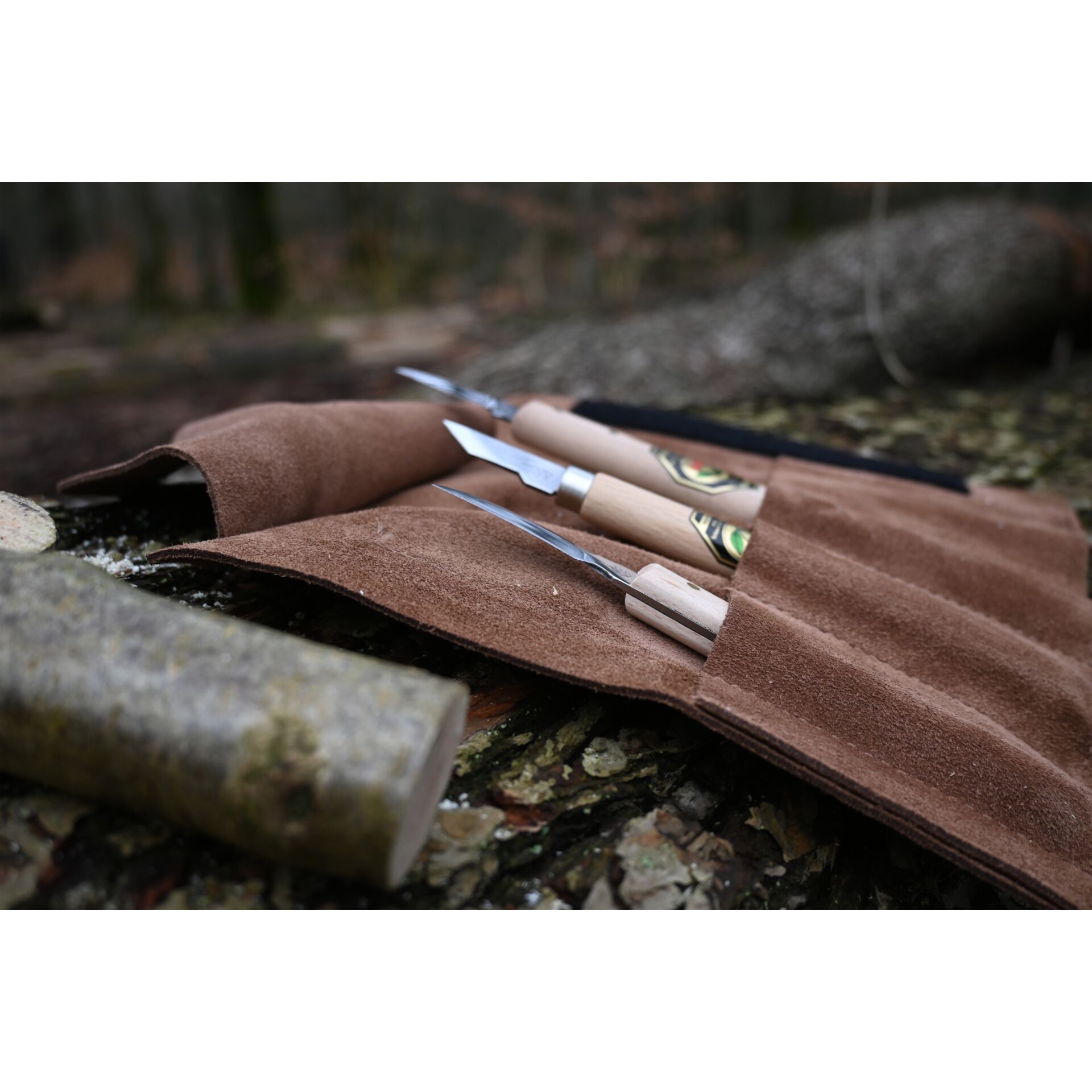 - 3-teiliges Schnitzmesserset in Velourledertasche