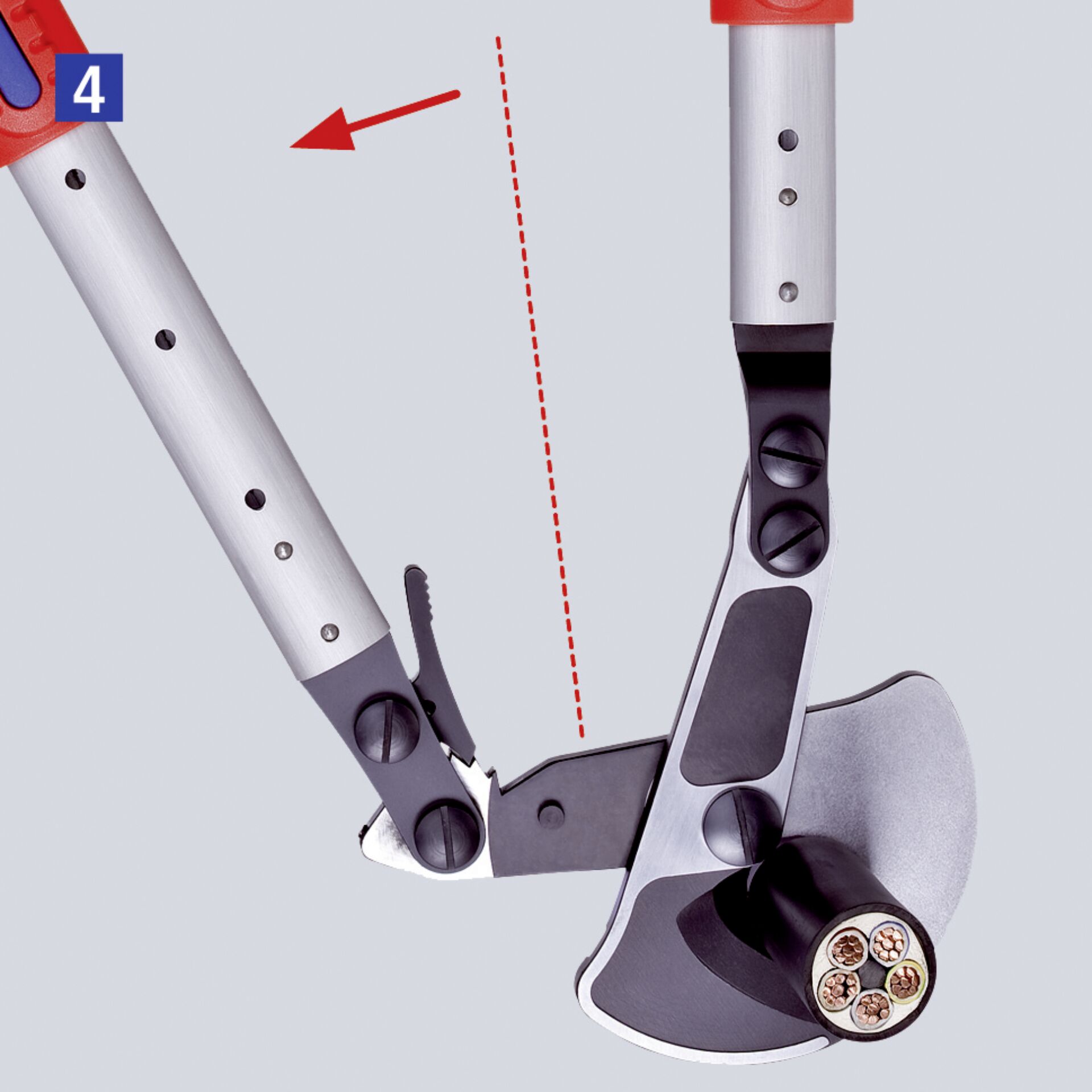 - Kabelschere mit verstell- und abwinkelbaren Teleskopschenkeln