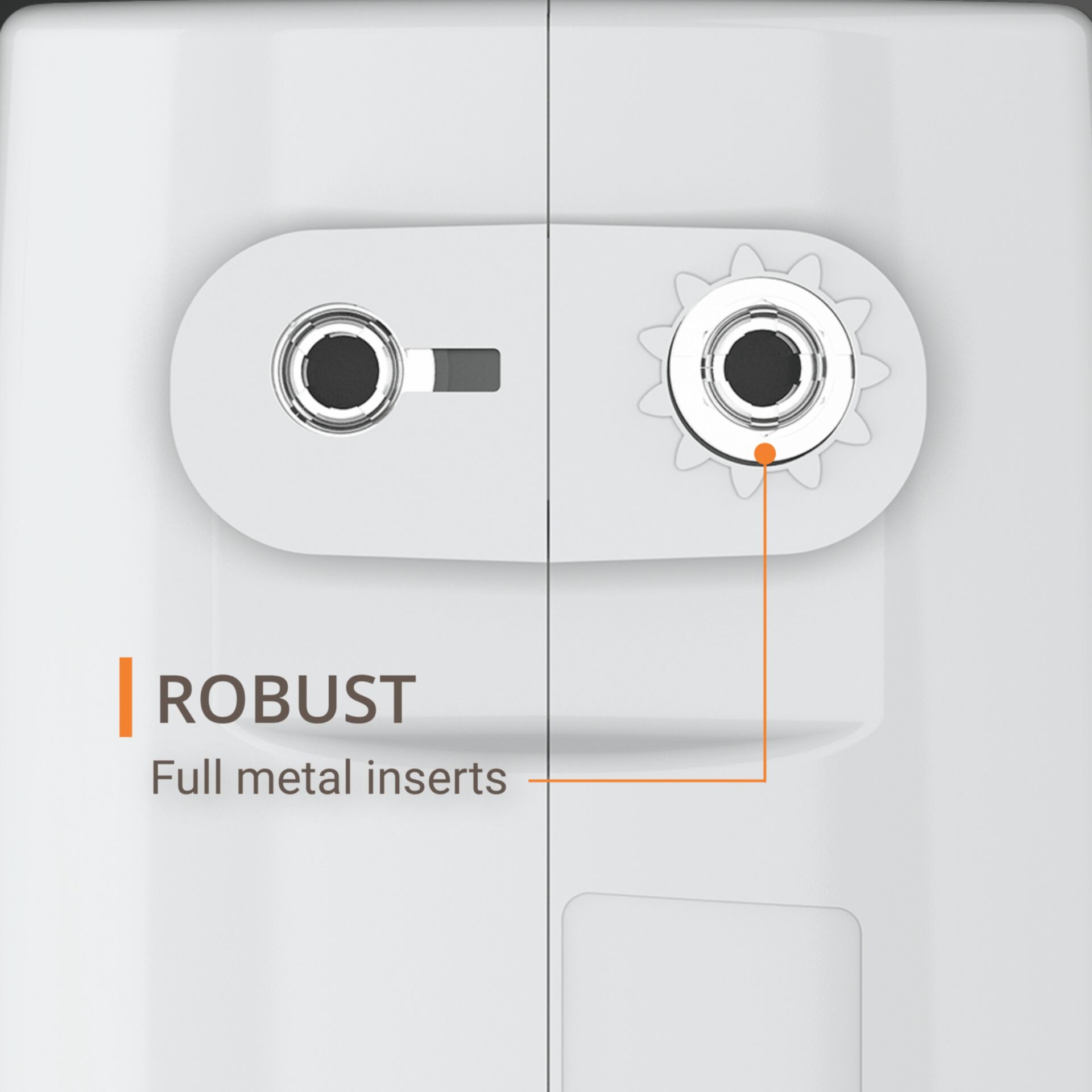 Dank der Turbo-Funktion können Sie die maximale Geschwindigkeit in kürzester Zeit erreichen und so hervorragende Ergebnisse erzielen. Dank der Auswurftaste lassen sich die Schneebesen und Knethaken ganz einfach zum Reinigen abnehmen.