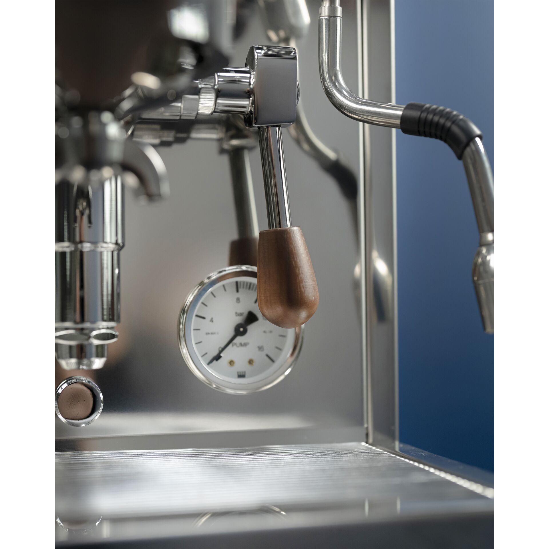 Die Maschine arbeitet mit einem Zweikreiser-System, wodurch Du Kaffee brühen und Milch schäumen kannst, ohne warten zu müssen. Die Materialien wie Kupfer, Messing und Edelstahl passen zu hohen Anforderungen an Temperaturführung und Haltbarkeit. Durch den Aufbau eignet sich das Gerät für Anwender, die Präzision beim Brühen schätzen. Auch der 58‑mm‑Siebträger unterstützt Dich bei der Zubereitung.
