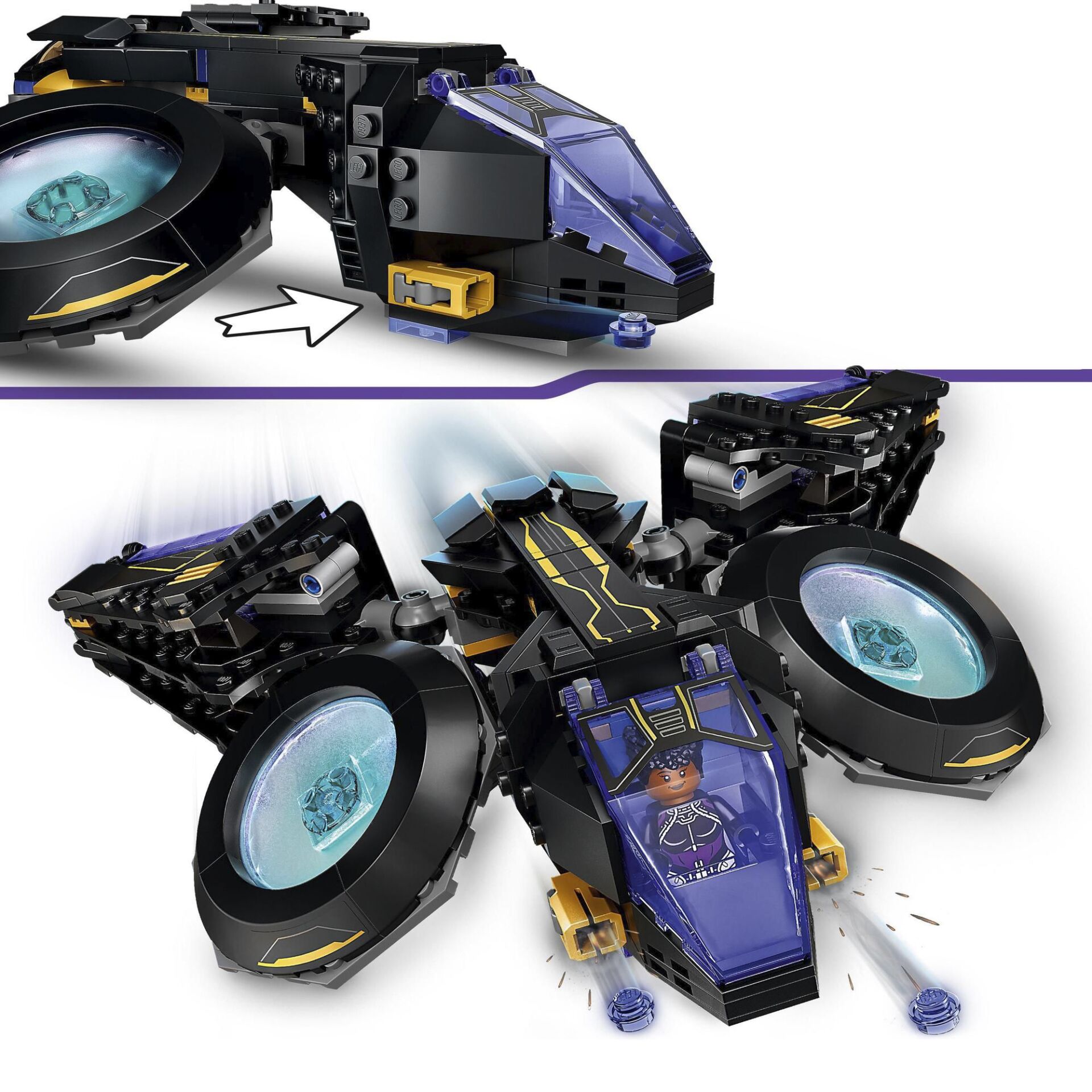 - Set beinhaltet: 4 Minifiguren (Shuri, Attuma, Nakia, Ironheart MK1), Nachbildung des Sonnenvogels, Zubehör- und Ausrüstungsgegenstände
