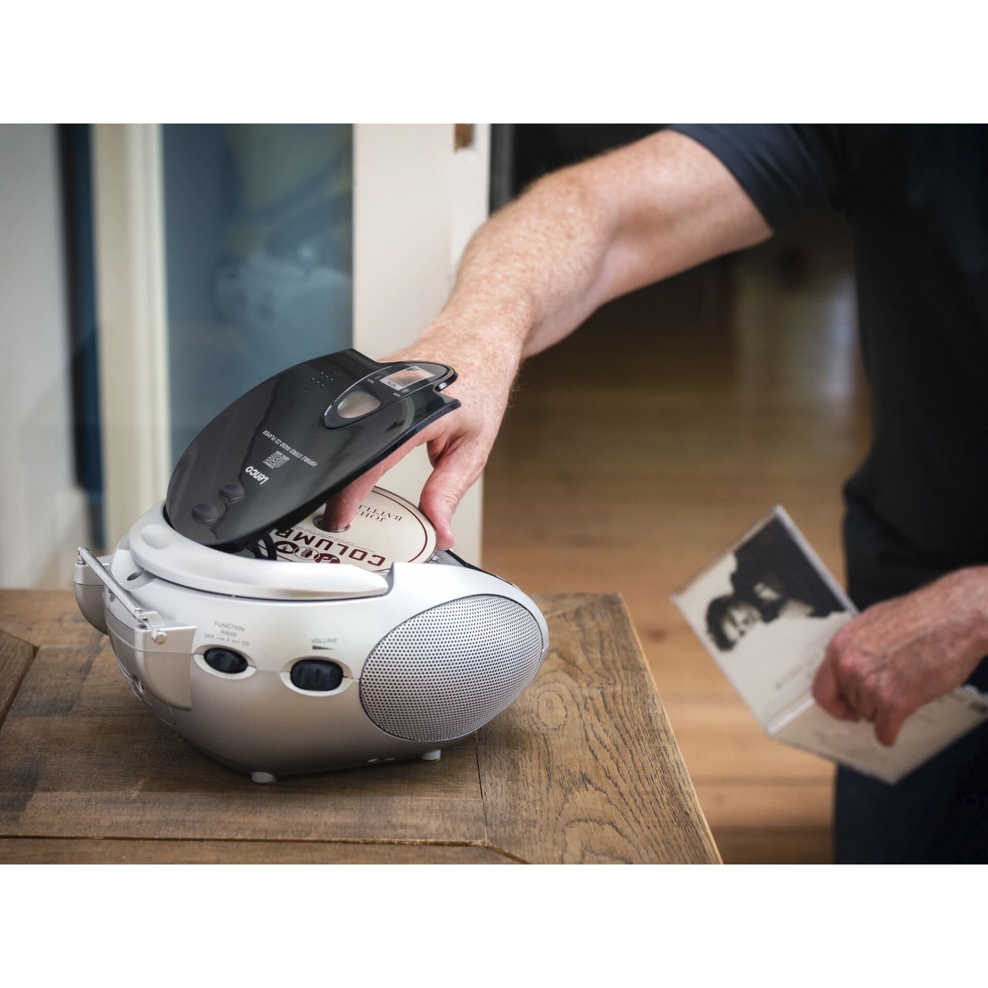 Lenco SCD-24 ist ein tragbarer FM-Radio/CD-Player für Jung und Alt. Das klare Design macht den Lenco SCD-24 einfach zu bedienen. Alles, was Sie tun müssen, ist den Lenco SCD-24 an eine Steckdose anzuschließen oder ihn mit Batterien zu versorgen. Mit einem Knopfdruck können Sie Ihre Lieblings-CDs oder Ihren Lieblings-Radiosender sofort genießen.