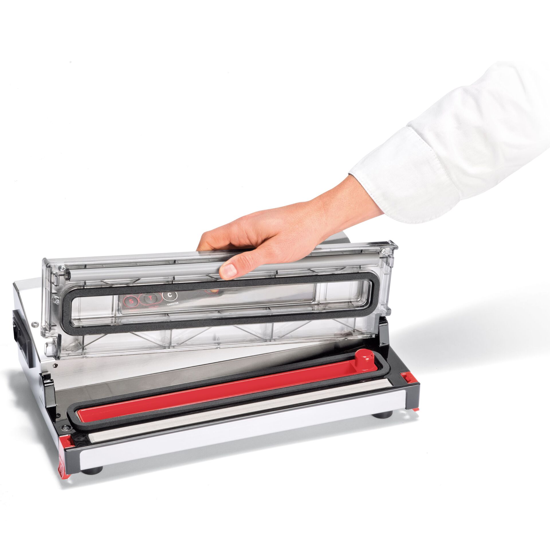 Das MAGICVAC Jumbo 30 Evo bietet verschiedene Versiegelungseinstellungen für trockene, feuchte und sehr feuchte Lebensmittel. Zudem verfügt es über eine manuelle Funktion zur sofortigen Versiegelung empfindlicher Lebensmittel sowie eine spezielle Versiegelungsoption für maßgeschneiderte Beutel. Das abnehmbare Oberteil und die spülmaschinenfeste Flüssigkeitsauffangschale erleichtern die Reinigung erheblich. Der Edelstahl Vakuumierer gewährleistet eine langlebige und zuverlässige Nutzung.