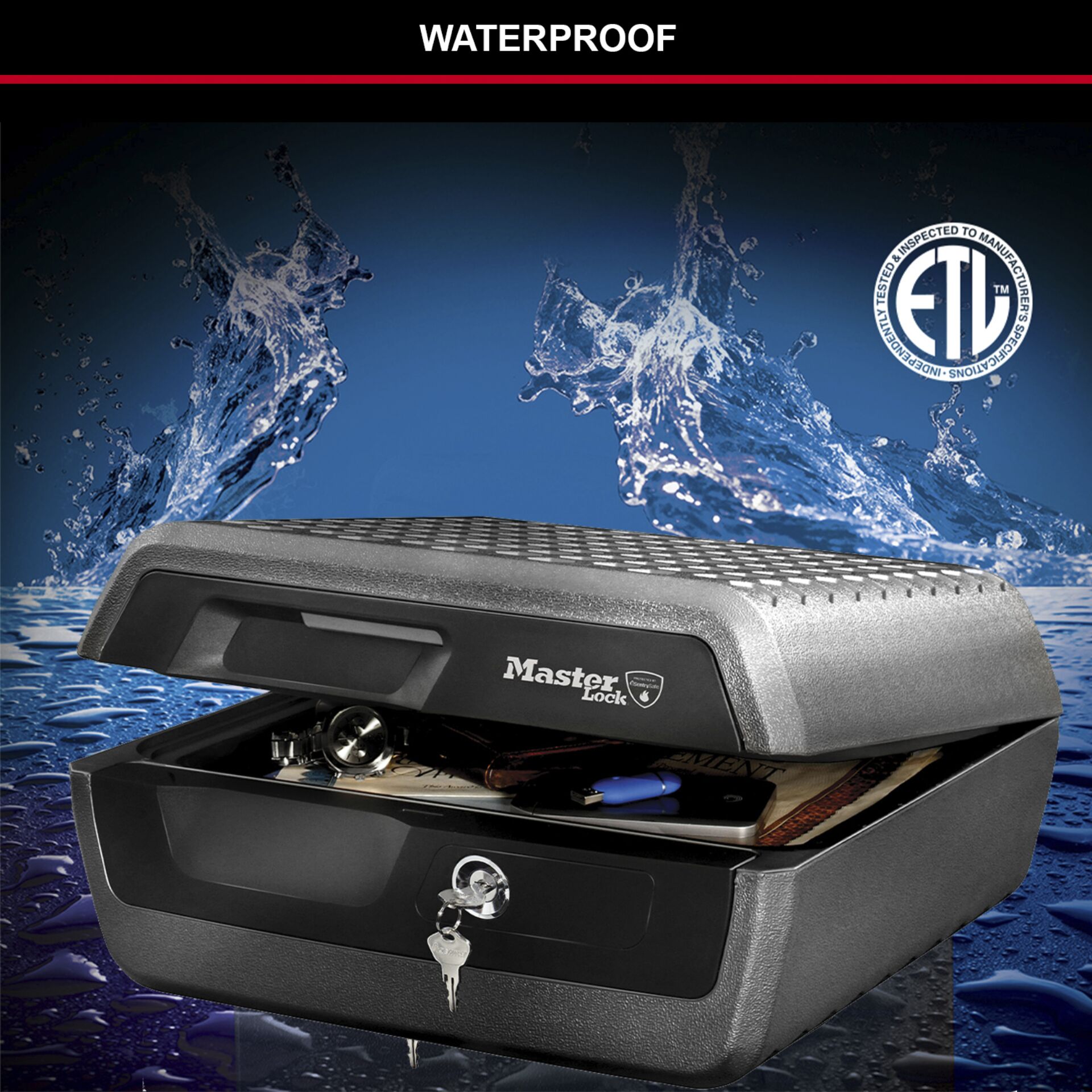 Die große Sicherheitskassette Master Lock Nr. LCFW30100 schützt Ihre wichtigsten Familiendokumente (geeignet für A4-Papiergröße), Medien und Wertsachen vor Feuer- und Wasserschäden.
