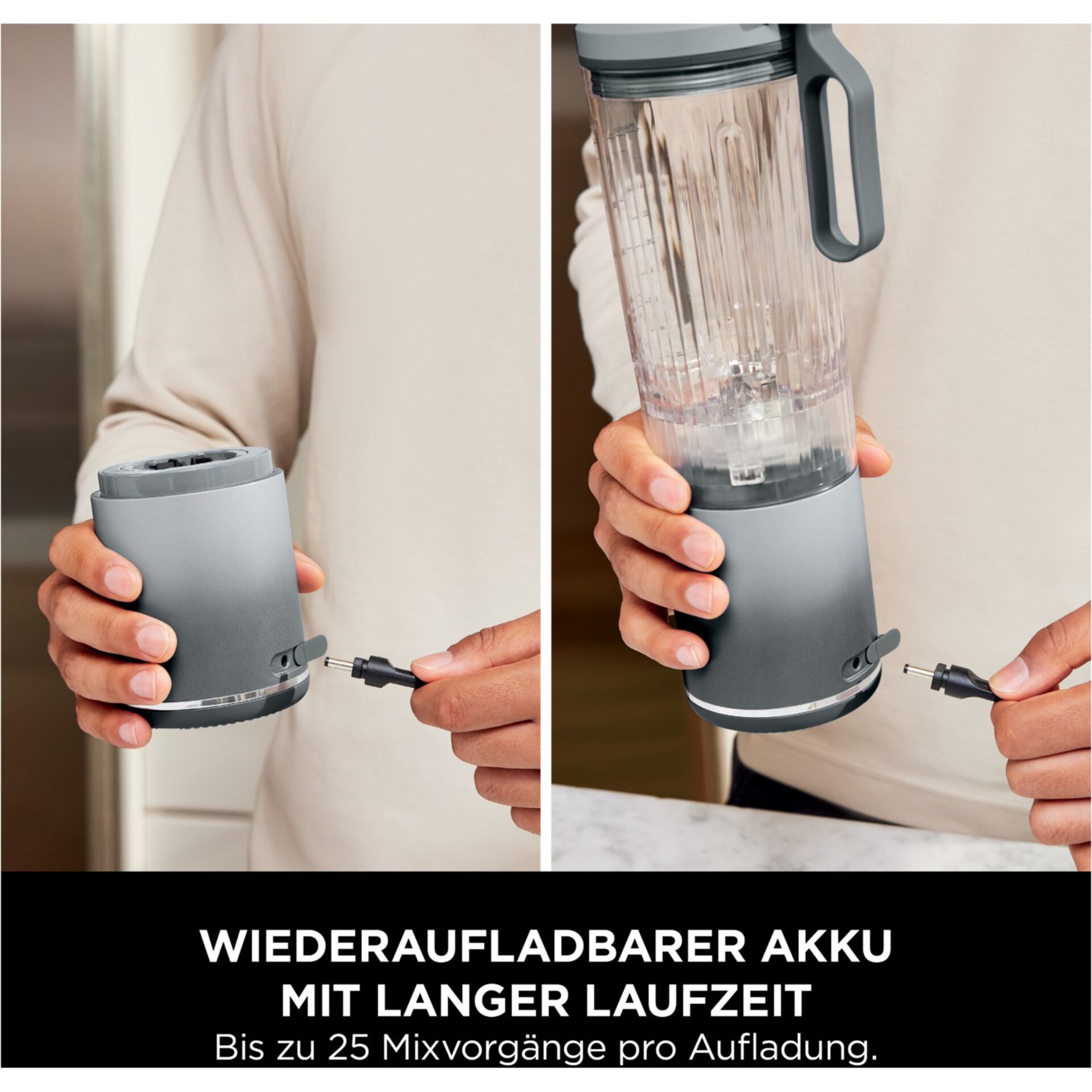 - Bis zu 25 Mixvorgänge pro Akkuladung für flexible Nutzung