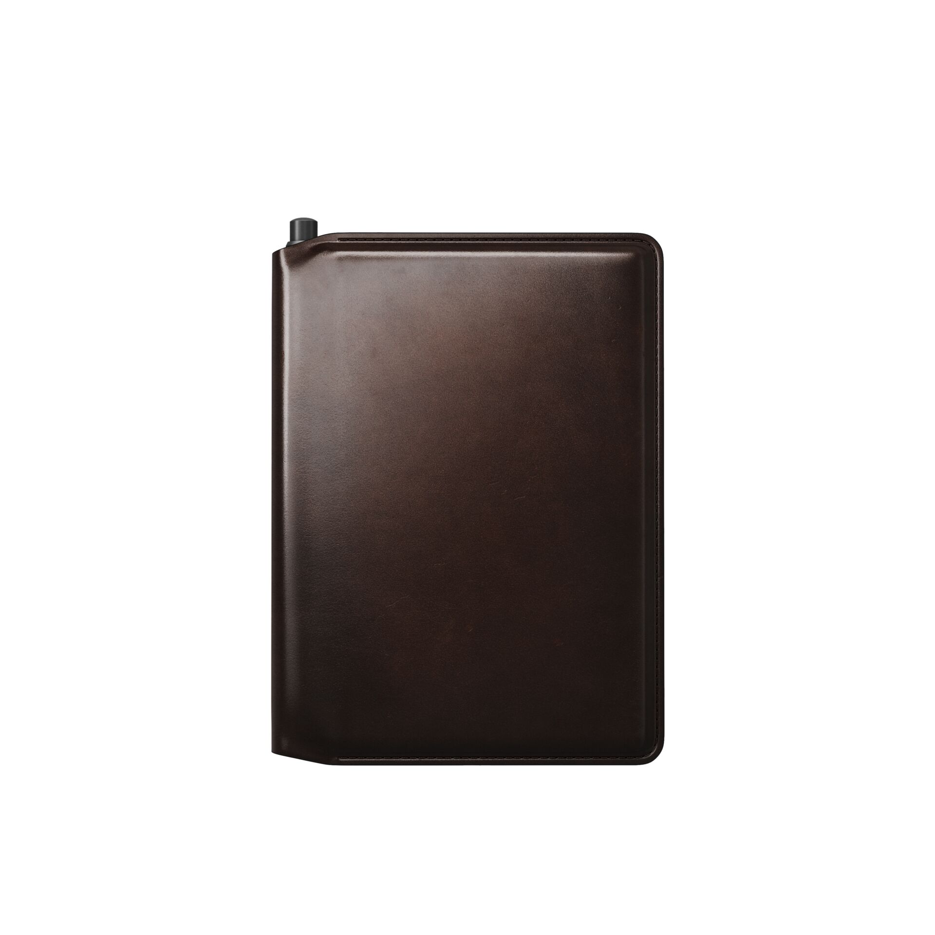 Gefertigt aus hochwertigem Horween Leder aus den USA, entwickelt das Material im Laufe der Zeit eine individuelle Patina, die dem Leder seinen charakteristischen Charme verleiht. Die thermoformierte Struktur gewährleistet eine langanhaltende Formstabilität, während ein weiches Mikrofaserfutter den Inhalt vor Kratzern schützt.