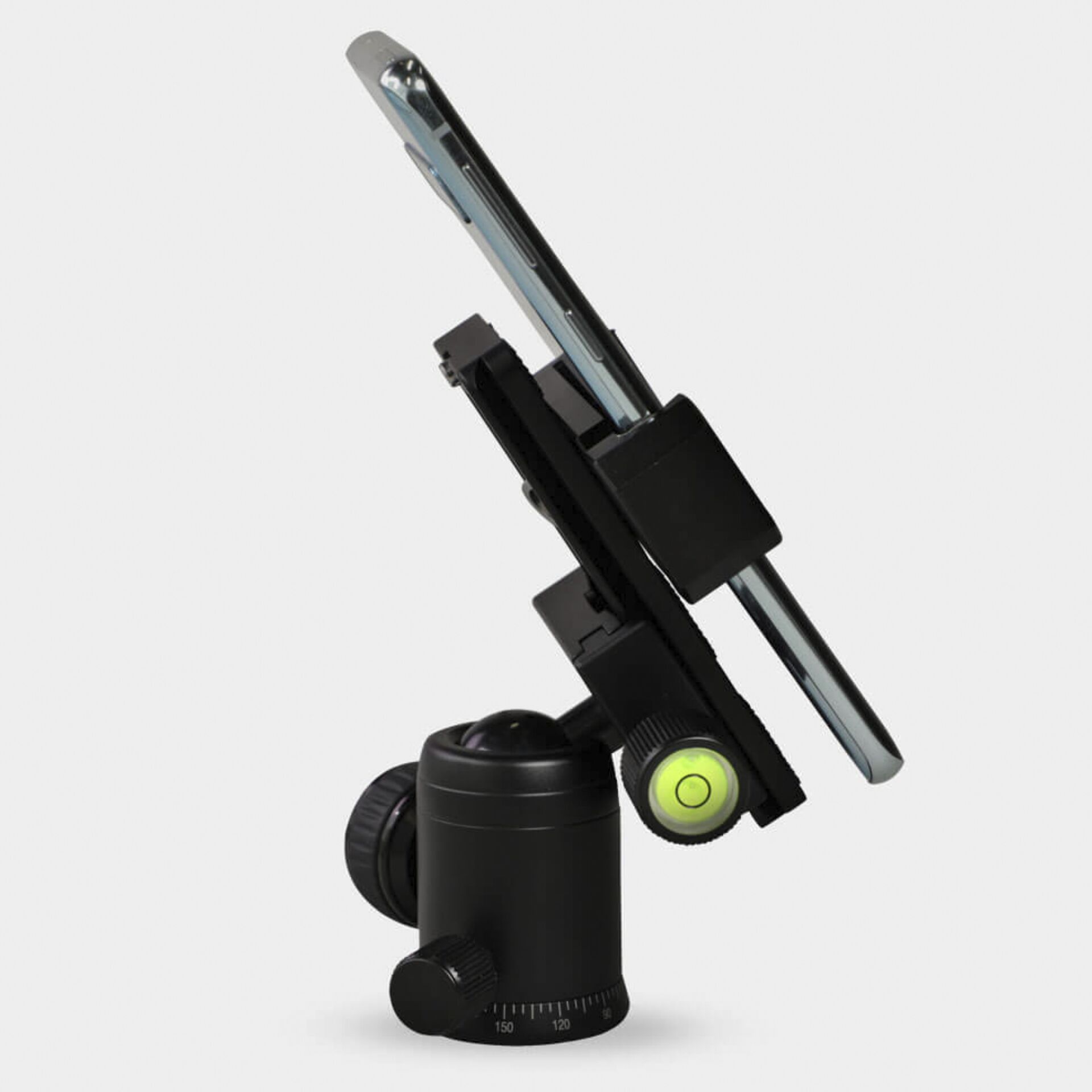 Kugelkopf aus Aluminium in Flugzeugqualität, Schnellwechselplatte und Smartphone-Halterung für mehr Leistung und Stabilität.