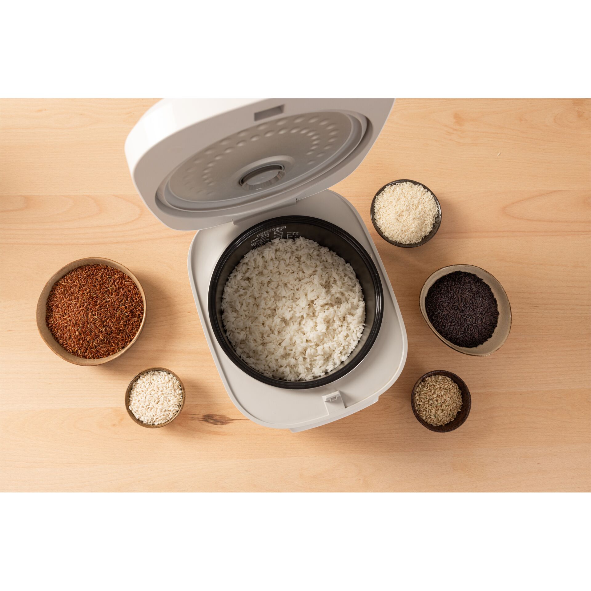 Die Bedienung erfolgt über ein Touchfeld mit LED-Anzeige, das dir die verbleibende Kochzeit anzeigt. Der Innentopf ist mit einer Keramikbeschichtung versehen, die das Reinigen erleichtert und gesundheitlich unbedenklich ist. Zubehör wie Messbecher, Reislöffel und Dampfgareinsatz sind bereits enthalten und machen die Zubereitung noch komfortabler.