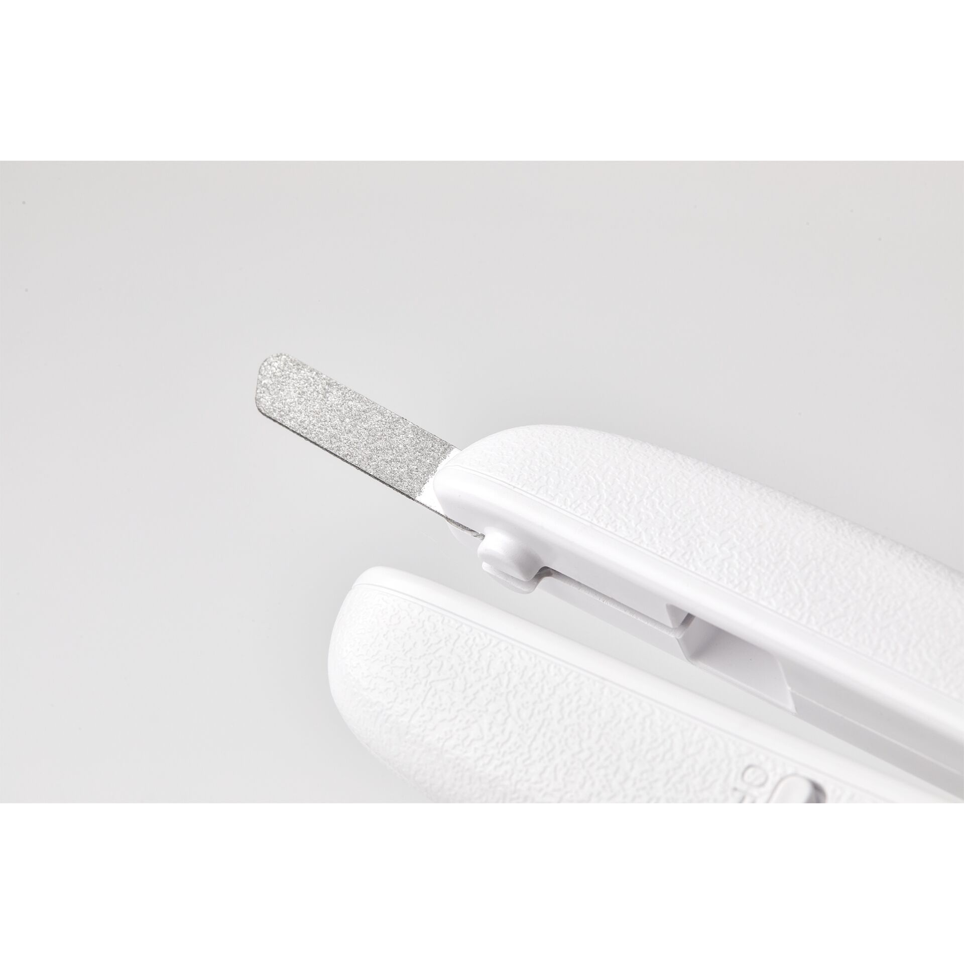 - Die 2-in-1-Funktion aus Knipser und Feile ergänzt die Pflege, indem beide Arbeitsschritte in einem Gerät stattfinden.