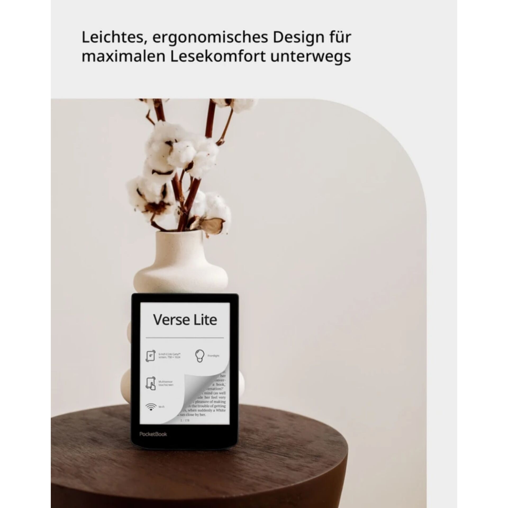 Mit dem PocketBook Verse Lite ist der Einstieg in die Welt des digitalen Lesens so einfach wie nie zuvor. Der kompakte E-Reader ist das jüngste Mitglied der bekannten „Verse“-Produktlinie und wurde speziell für diejenigen entwickelt, die ein einfaches, funktionales Lesegerät ohne zusätzliche Extras suchen. Der E-Reader überzeugt durch ein ergonomisches Design, ein augenschonendes 6-Zoll-Display mit integrierter Frontbeleuchtung und besitzt alle wichtigen Funktionen für ein entspanntes Leseerlebnis - zu Hause und unterwegs.