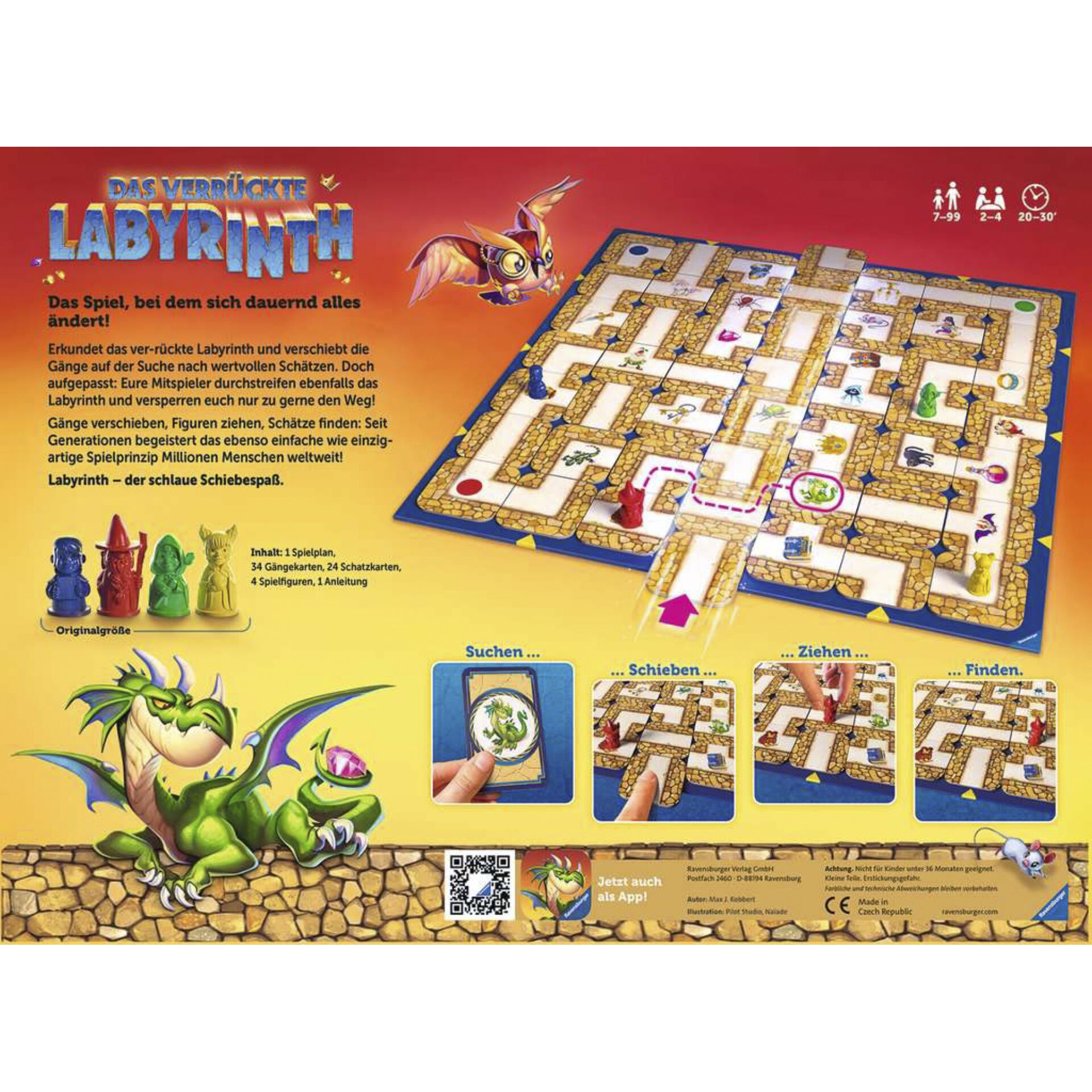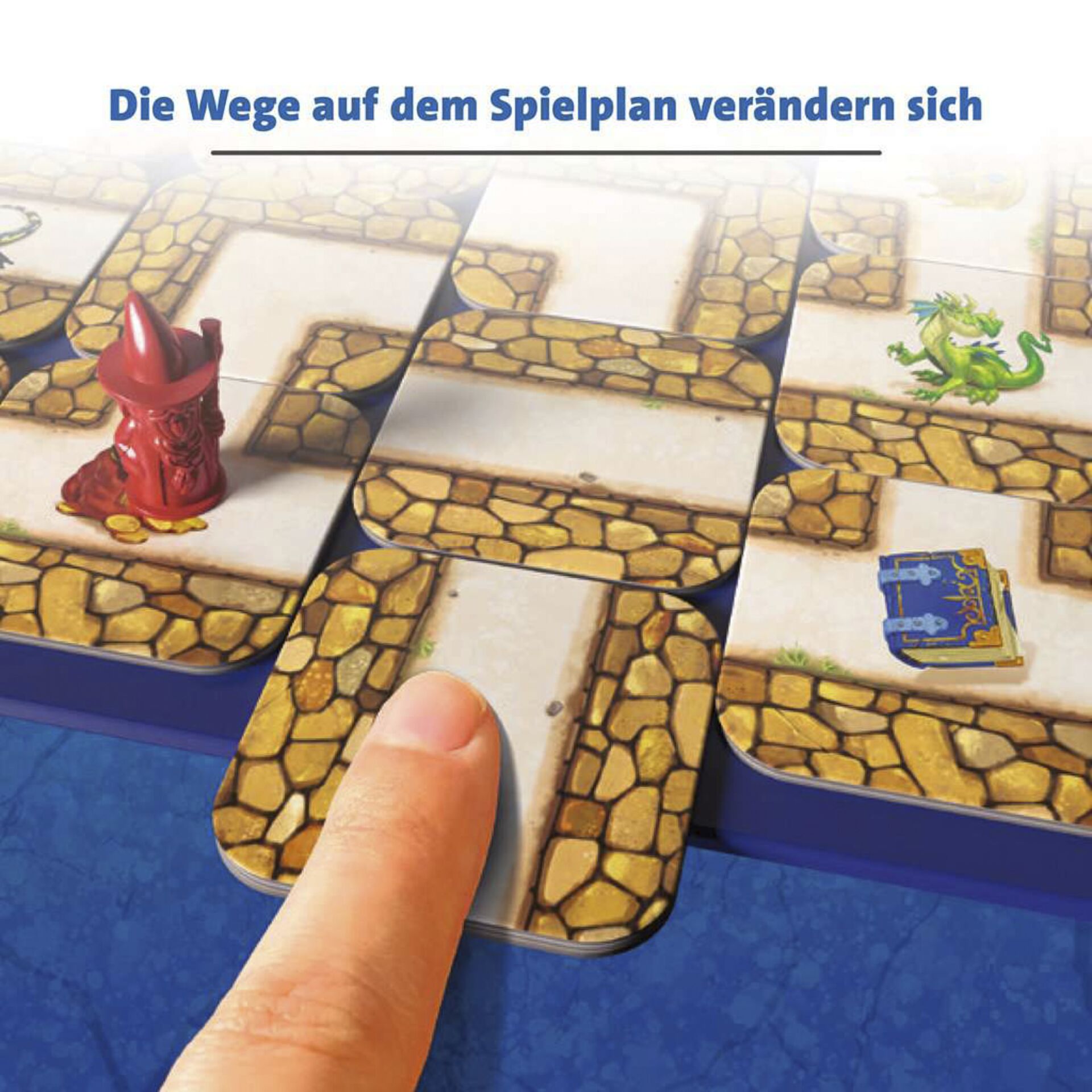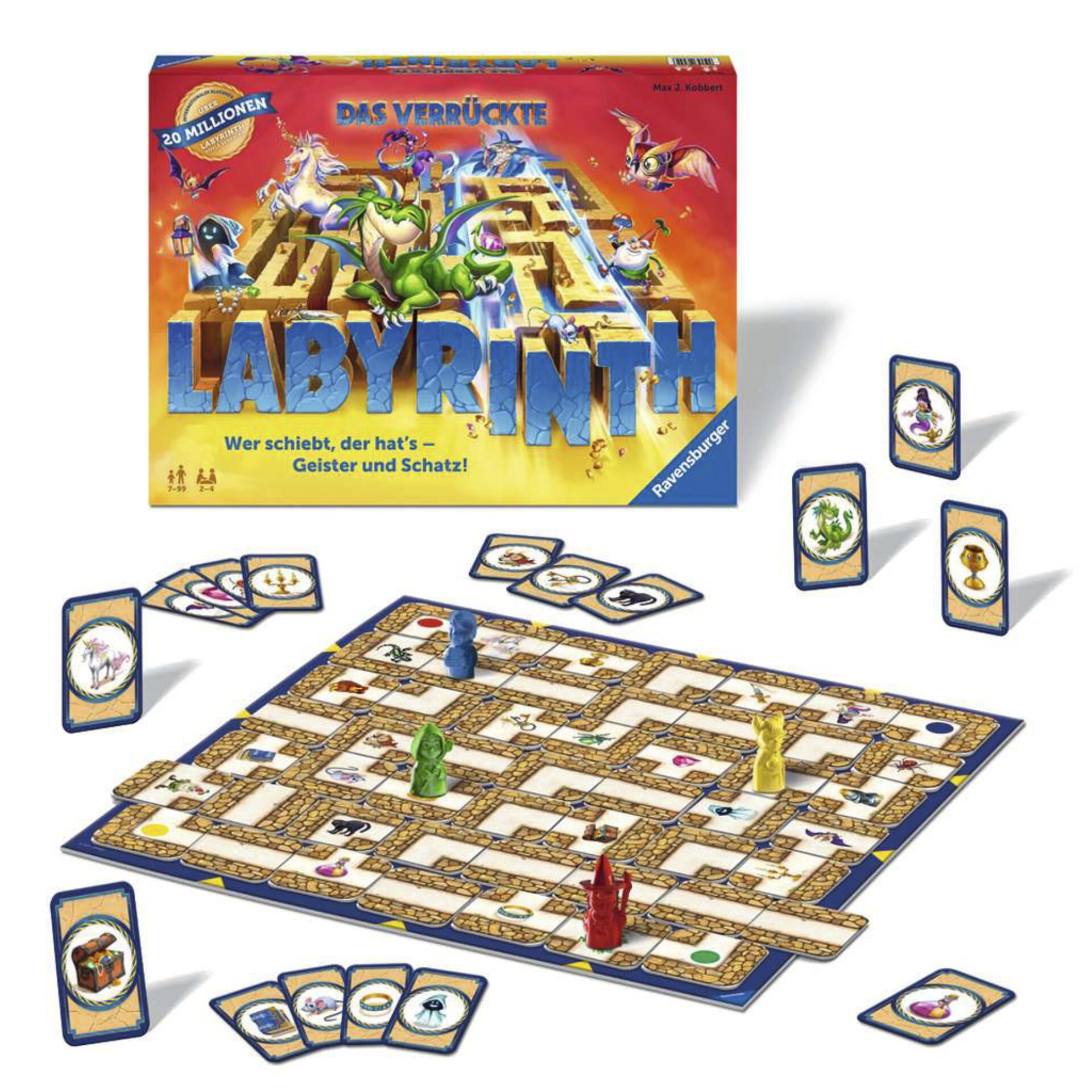 "Das verrückte Labyrinth" jetzt in einem völlig neuen Design: Seit vielen Jahren fasziniert das einfache und einzigartige Spielprinzip Millionen von Menschen. Auf der Suche nach geheimnisvollen Gegenständen und Kreaturen durchqueren die Spieler als Zauberer, Hexe, Wahrsagerin und Zauberlehrling das Labyrinth. Wer als Erster den Ausgang findet, gewinnt. Zum Glück haben sie Magie auf ihrer Seite und können die Wände des Labyrinths verschieben. Auf dem Weg durch das zufällige Muster der Gänge muss jeder Spieler zunächst geheime Orte erreichen. Die Geheimniskarten zeigen, ob Geist, Schlüsselbund, Eule oder etwas anderes das nächste Ziel ist. Wie gehen Zauberer, Hexe und Co. nun vor? Bahnen sie sich selbst einen Weg oder blockieren sie die anderen? Wer als Erster alle Geheimnisse entdeckt hat und zu seinem Startplatz zurückkehrt, ist der Sieger. Durch die zufällige Anordnung der Gängekarten verläuft jede Partie anders. So ist unbegrenzter Spielspaß garantiert!