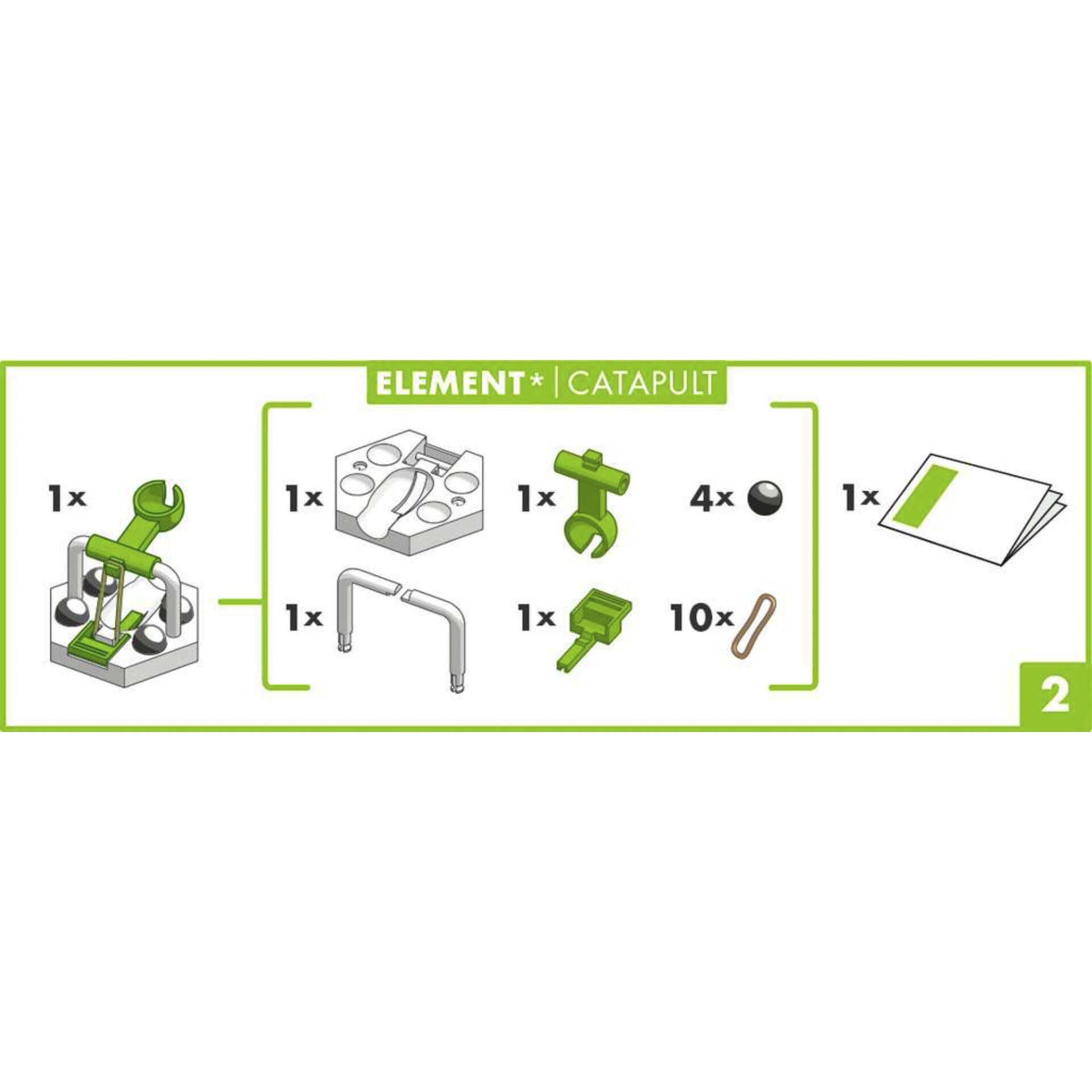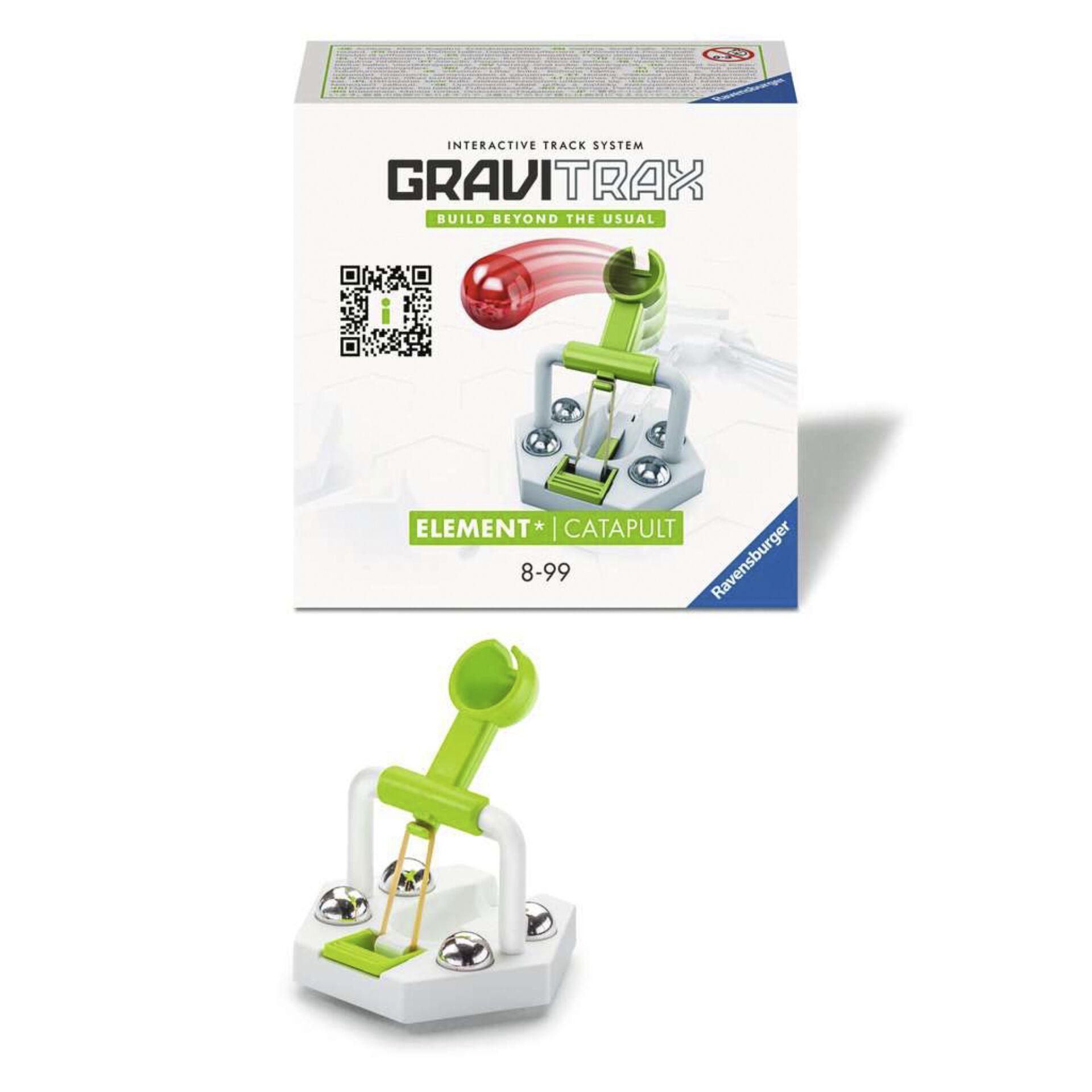 Das GraviTrax Element Catapult sorgt für ein aufregendes Kugelspiel! Es schießt die Kugeln auf der Bahn in die Höhe und über Hindernisse hinweg. Wenn eine Kugel in das Katapult gelangt, wird ein Mechanismus aktiviert und der Arm samt der Kugel nach oben geschossen, um die Kugel weit wegzuwerfen. Wenn du das Element Catapult mit einem GraviTrax Starter-Set kombinierst, erhält deine Kugelbahn neuen Schwung und extra Energie.