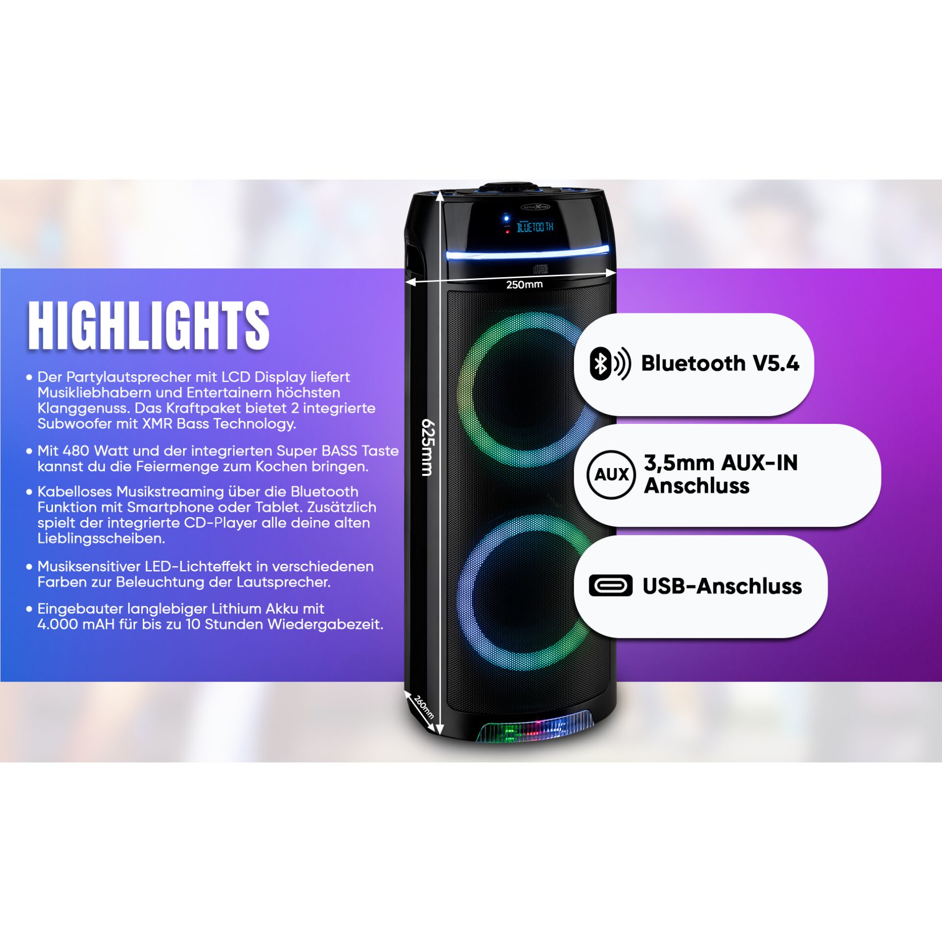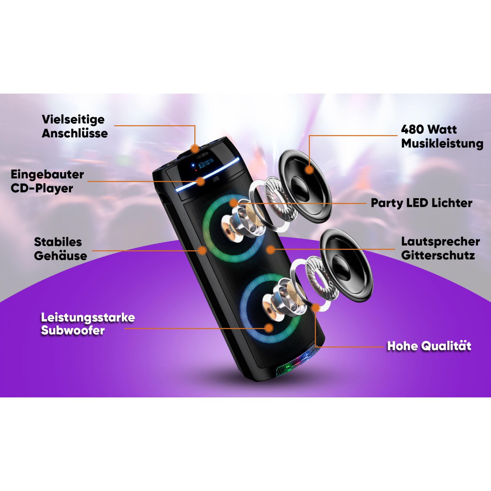 - Maximale Musikleistung: 480 Watt