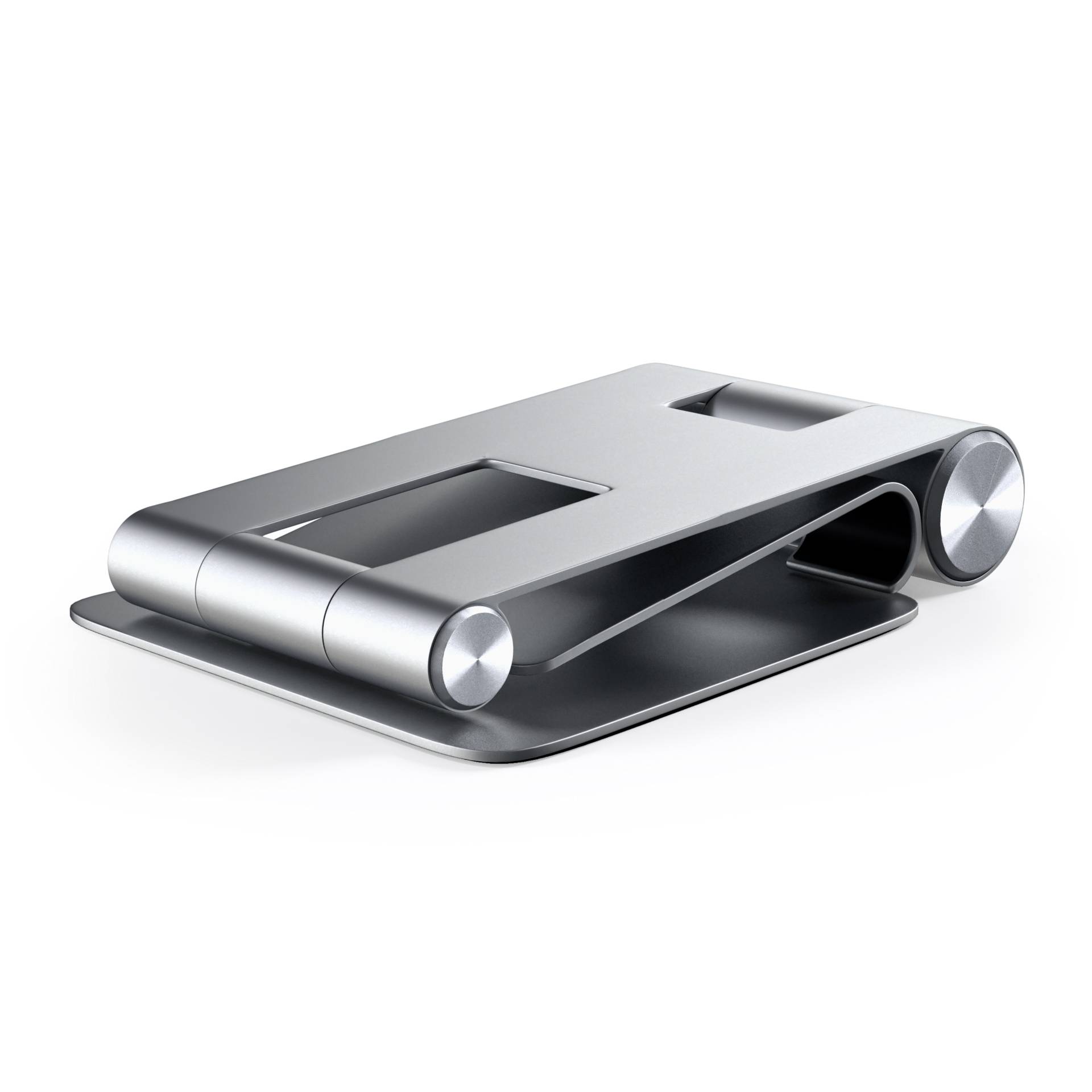 Der Satechi Aluminum Foldable Stand ist ein Aufsteller für jegliche Smartphones oder Tablets, der gewährleistet, dass das Gerät auf einer angenehmen Höhe zum Arbeiten angebracht ist. Die Halterung ist aus Aluminium gefertigt und die Halterungsstützen, auf denen das Gerät aufliegt, sind mit Gummi verstärkt, damit keine Kratzer entstehen können.