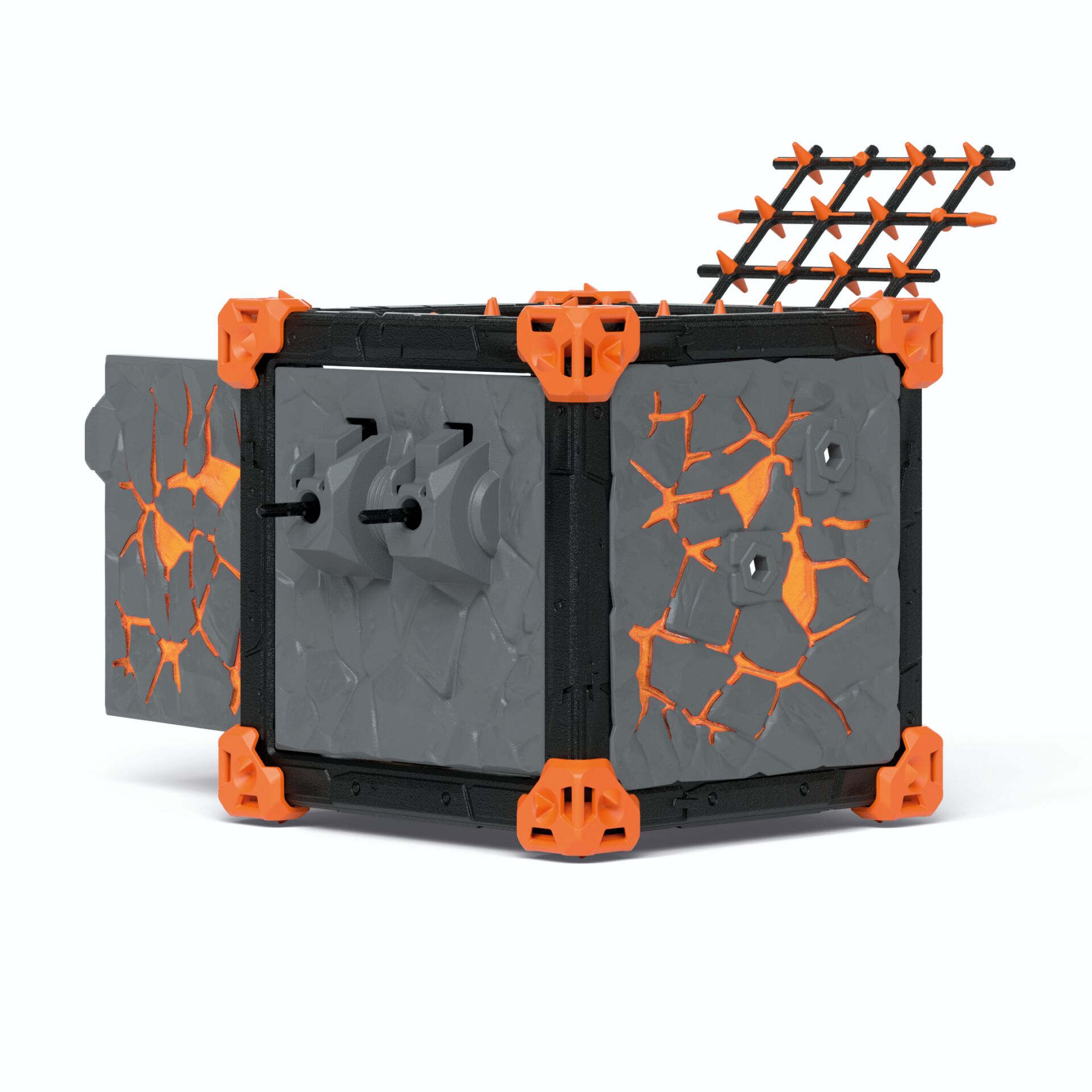 Glühend heiß wird es in der Nähe des BattleCaves der Lavahyäne! Sie fletscht die scharfen Zähne und schüttelt die lodernde Mähne. Wer sich dennoch zu nah an den BattleCave heranwagt, muss sich in Acht nehmen: Aus den Augen des Gruselgesichts werden Pfeile abgefeuert und die Gitterstäbe öffnen sich zu einer Falle!